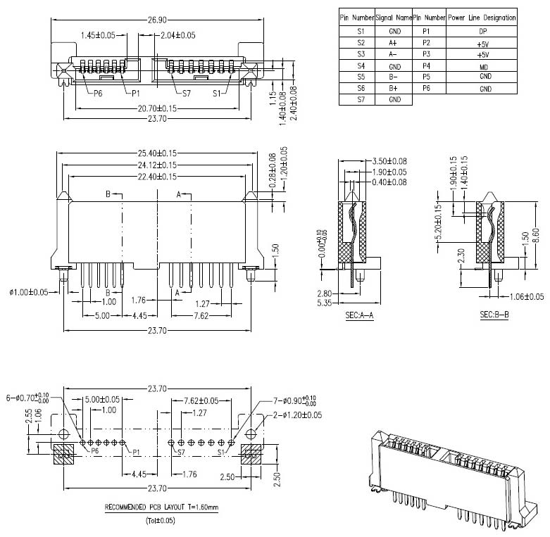 • Slim Line SATA 7+6P