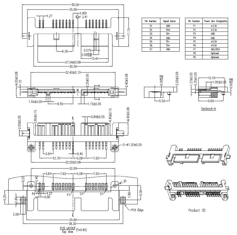 - Housing: LCP+50%G.F, UL 94V-0 Rated.