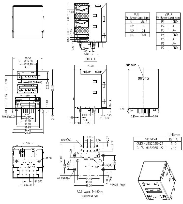 - Housing: Nylon46+30% G.F., UL 94V-0 Rated.
