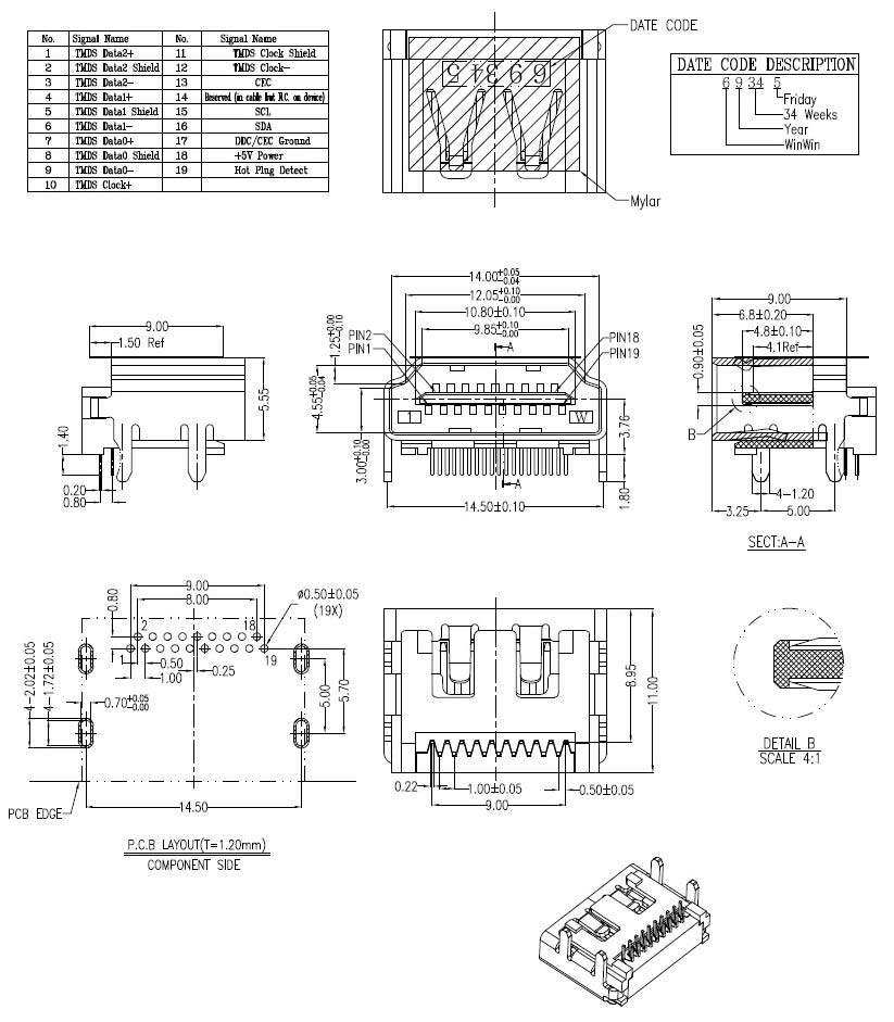 - HDMI (High Definition Multimedia Interface) 19Pins Right Angle