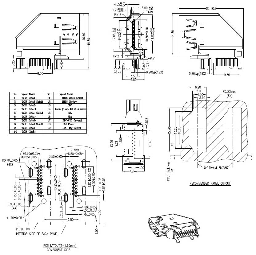 - HDMI (High Definition Multimedia Interface) 19Pins Upright