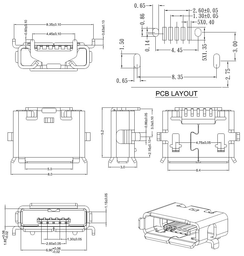 - Withdrawal Force: 1.0Kgf Min Initial, 0.81~2.05Kgf after 10,000Cycles.