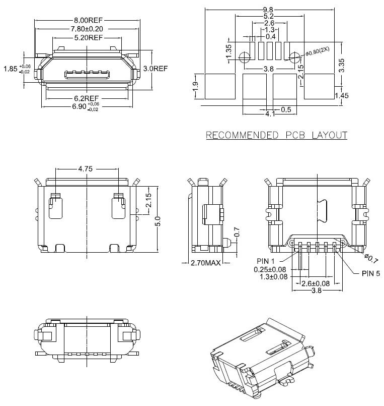 - Housing: LCP+50%G.F, UL 94V-0 rated.