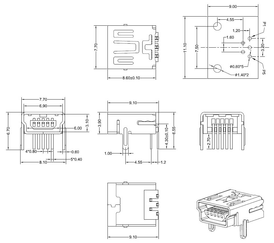 - Plating: Gold Plating over Nickel(60u") on Contact Area;