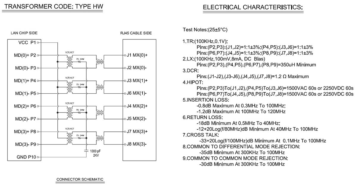 - Dielectric Withstanding Voltage: 1000 VAC Rms 60Hz, 1Min.