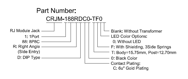 - Housing: DSM Stanyl TE250F6(Nylon 46), UL 94V-0 Rated.