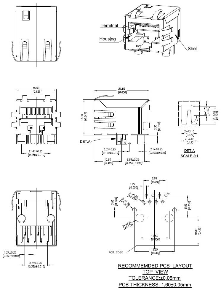 - Housing: Thermoplastic, UL 94V-0 Rated.