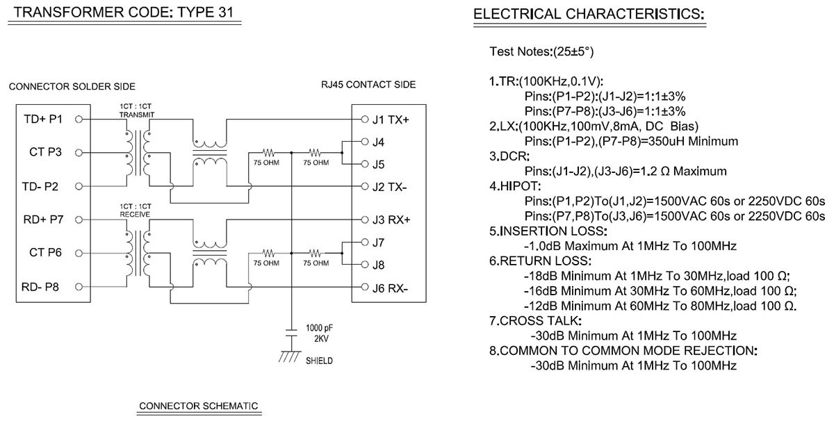 - Dielectric Withstanding Voltage: 1000 VAC Rms 60Hz, 1Min.