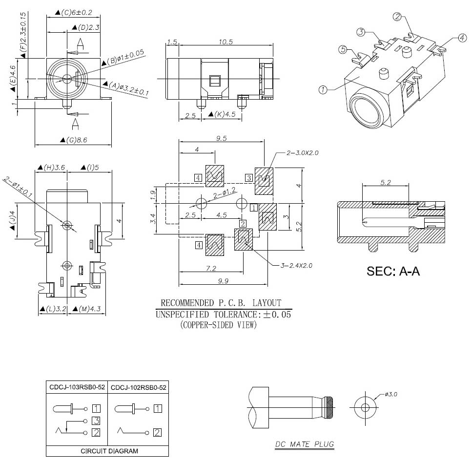 - Dielectric Withstand Voltage: 500V AC per Minute.