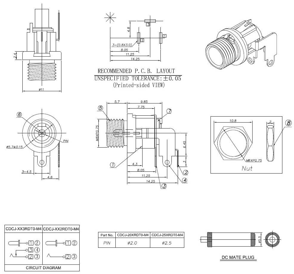 - 2.00mm or 2.5mm Center Pin/5.70mm