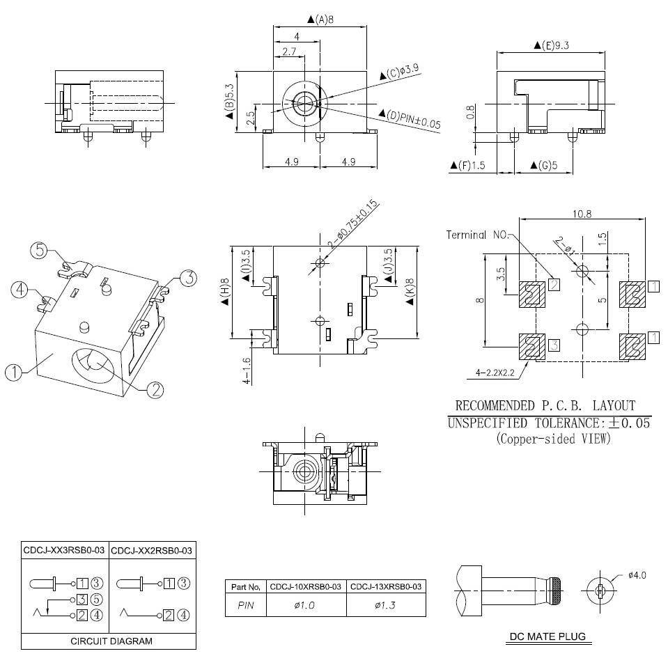 - 1.00mm or 1.30 Center Pin/3.90mm