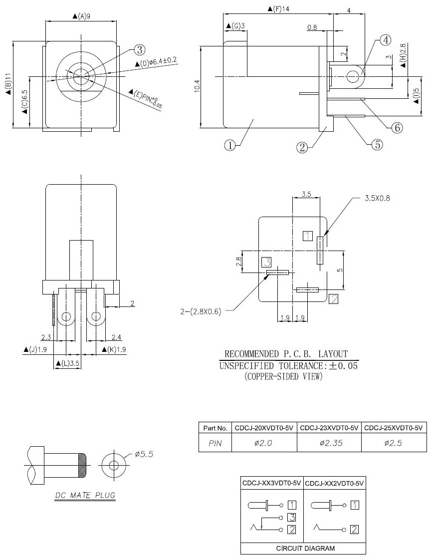 - Center Pin=2.0mm or 2.35mm or 2.5mm