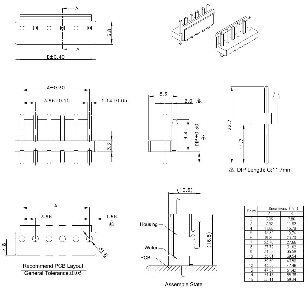 - Housing: Nylon 66, UL 94V-2 Rated.