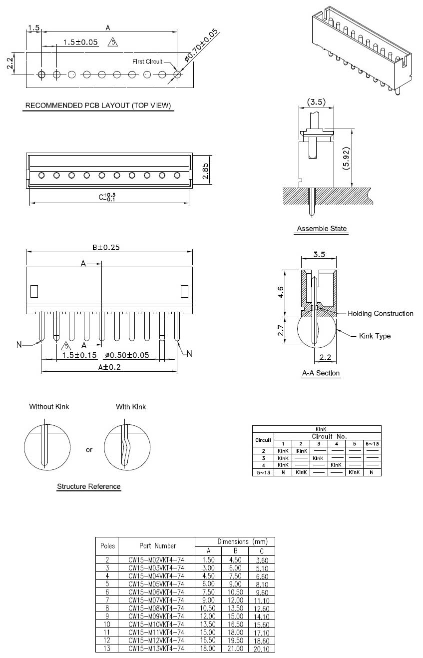 • Dielectric Withstanding Voltage: 500V AC per Minute.