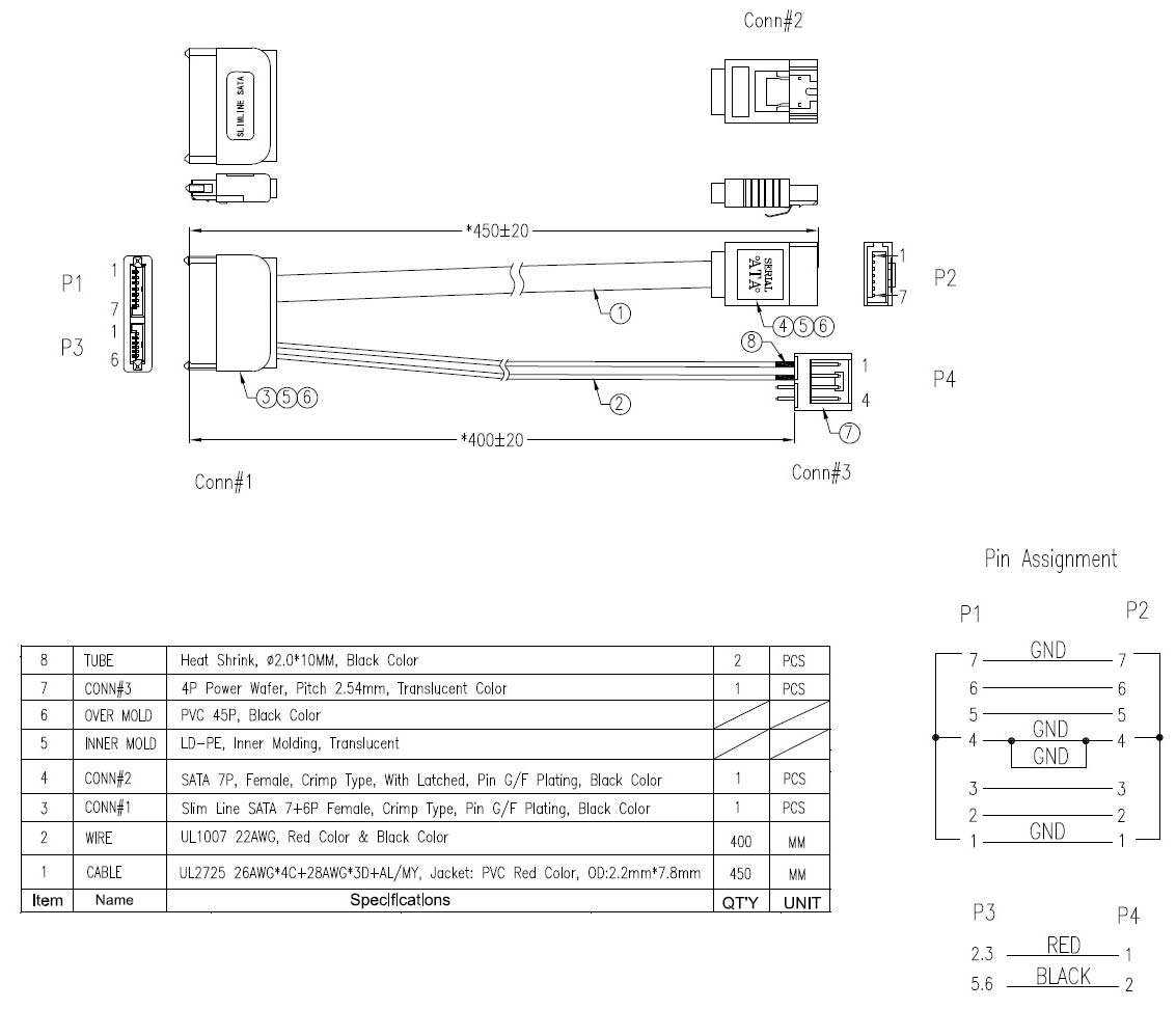- SlimLine SATA 7+6P Female to SATA 7P Female