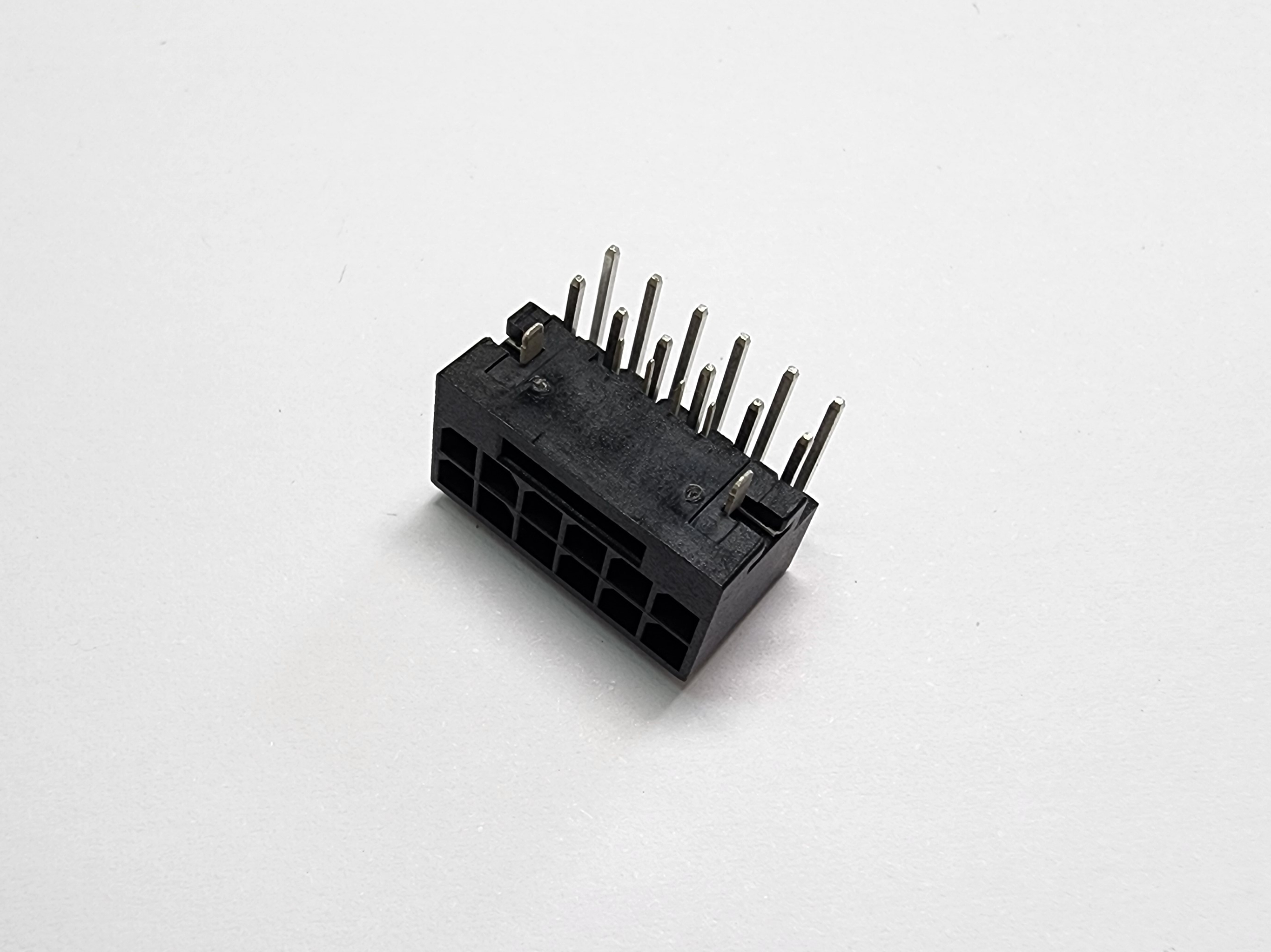 ATX3.1 H++ PCI Express 6.0 12V-2x6 Auxiliary Power, 3.0mm 2x6Pins with 2.0mm 4Pins, Male Type, Right Angle, DIP D=2.1mm, H=9.81mm, PA9T, Black Color