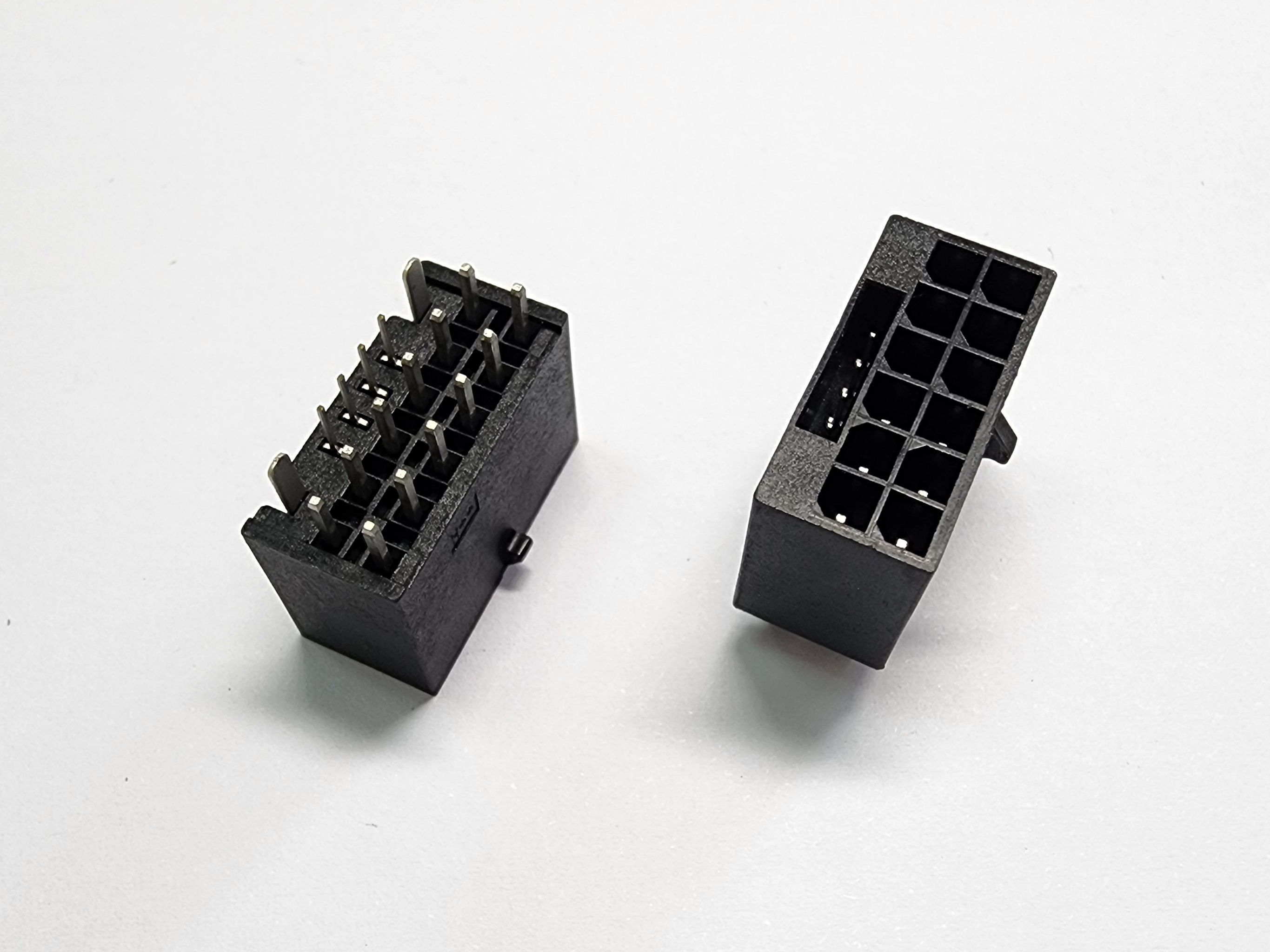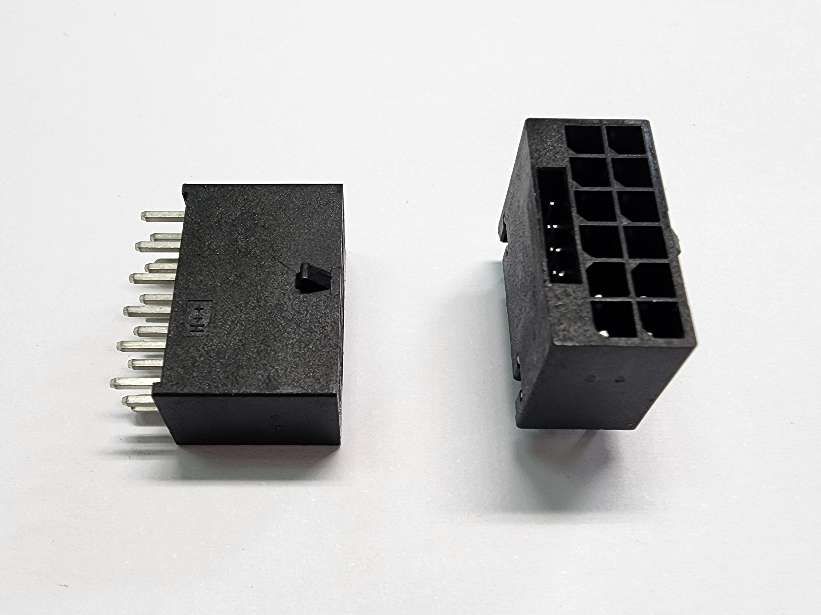 ATX3.1 H++ PCI Express 6.0 12V-2x6 Auxiliary Power, 3.0mm 2x6Pins with 2.0mm 4Pins, Male Type, Vertical, DIP D=3.4mm, H=12.80mm, Thermoplastic, Black Color
