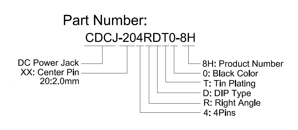 DC Power Jack, 2.0mm/5.5mm, 4Pins, Right Angle, DIP, Tin Plating, H=10.7mm, With Shielding, PA9T, Black Color, Support 24V 10A