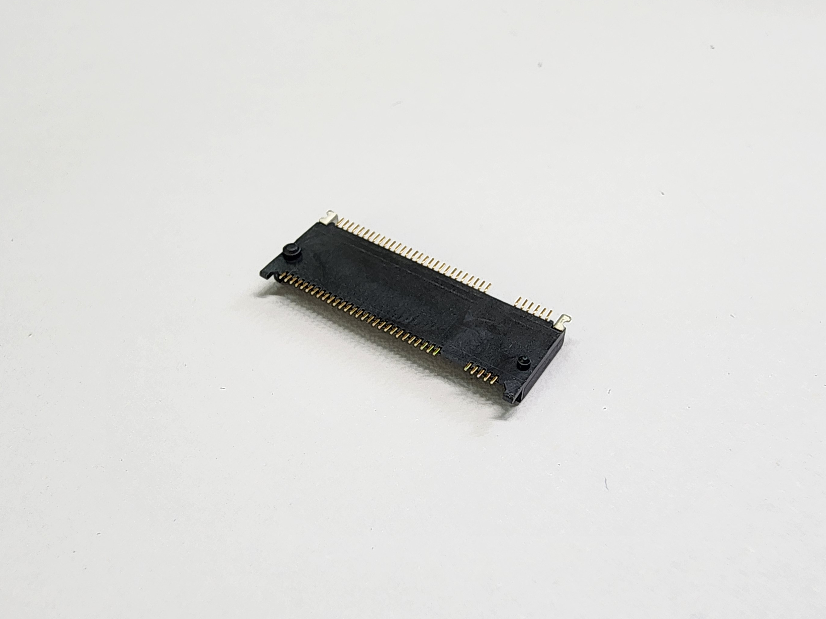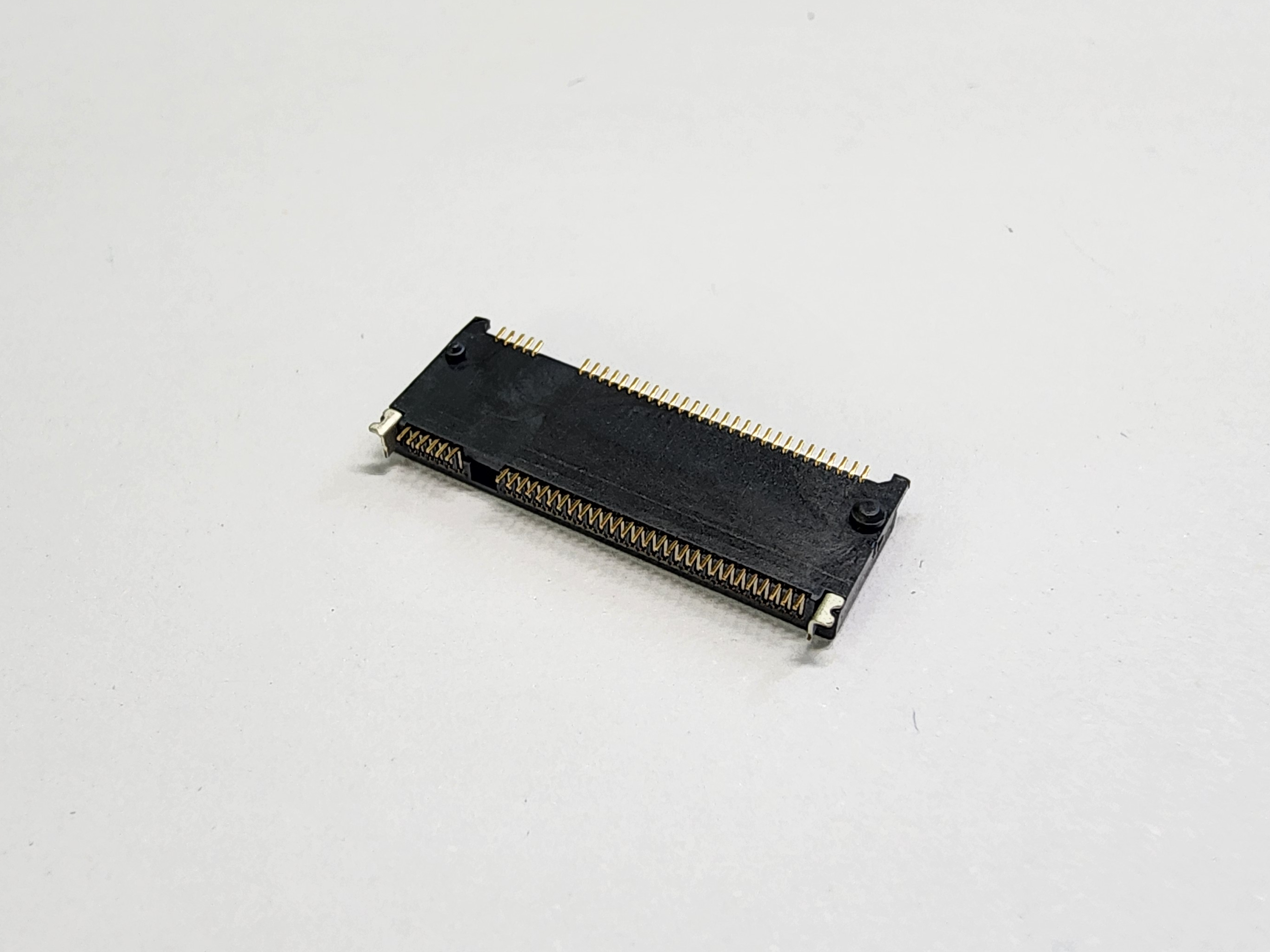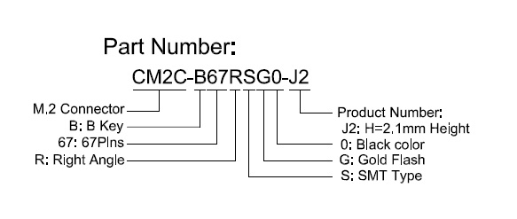 M.2 Card Edge Connector, B Key, 67Pins, Right Angle, SMT, Gold Flash, H=2.150mm, LCP, Black Color