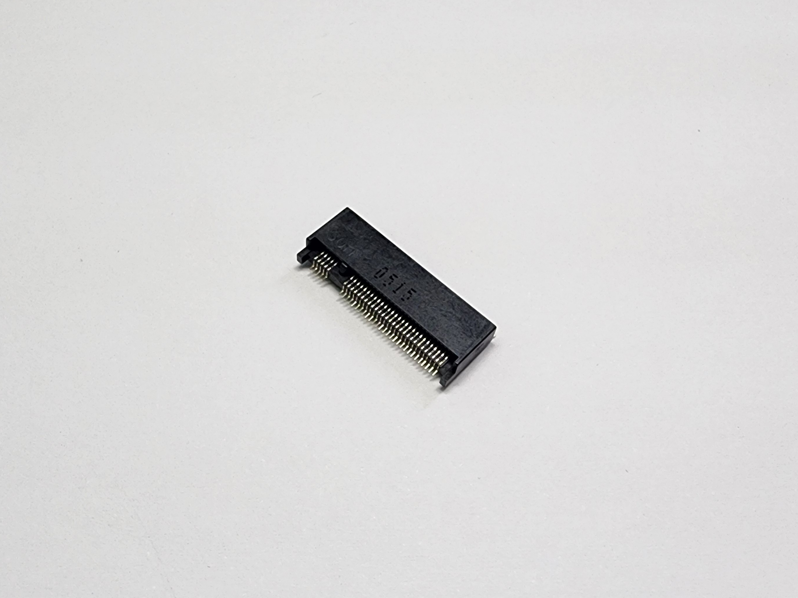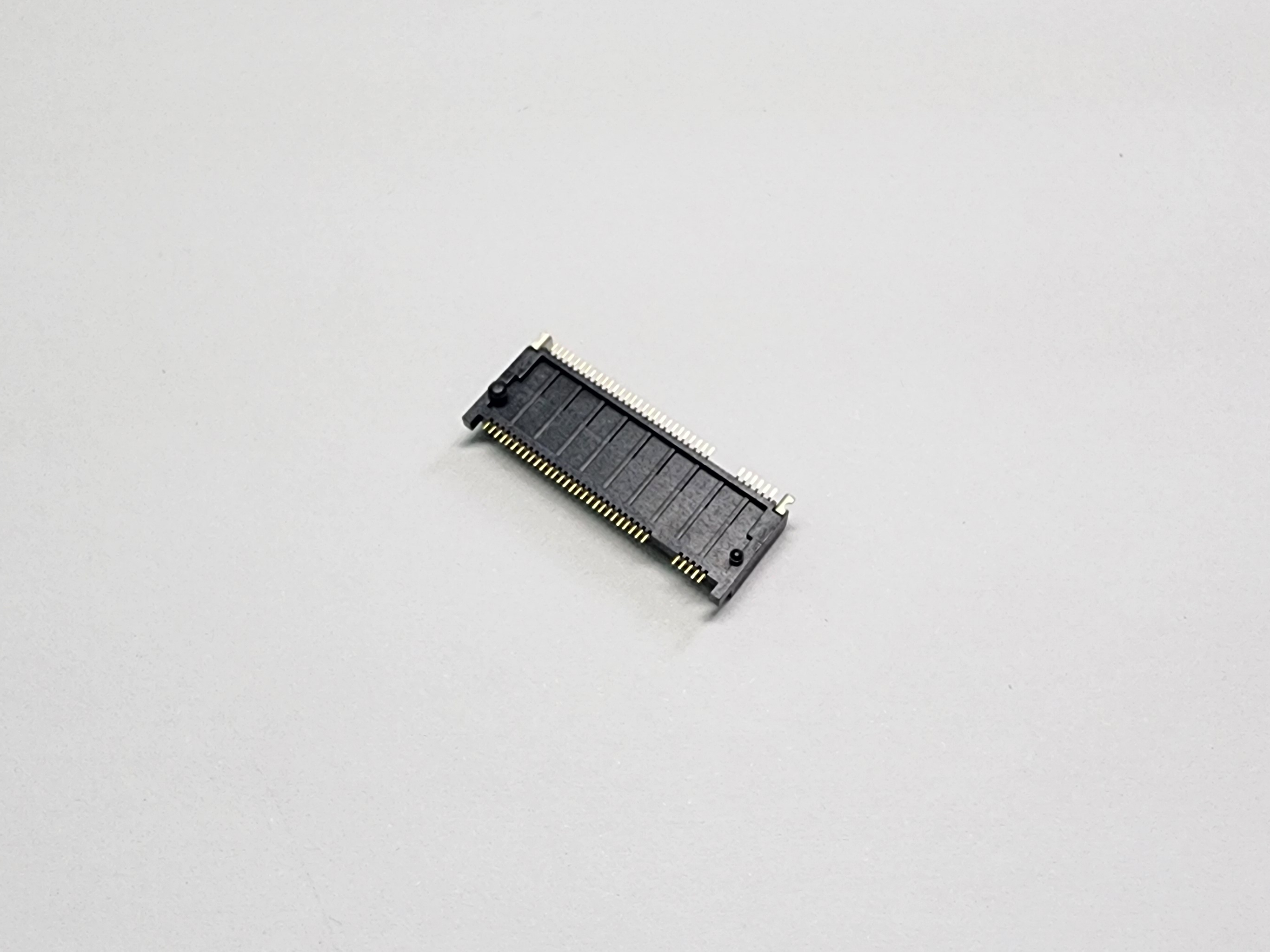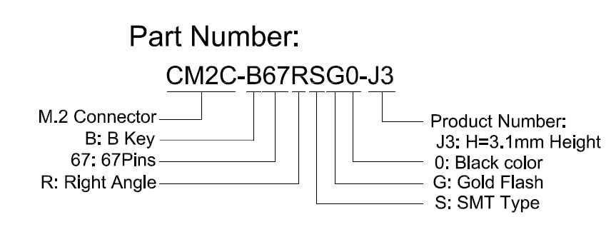 M.2 Card Edge Connector, B Key, 67Pins, Right Angle, SMT, Gold Flash, H=3.10mm, LCP, Black Color