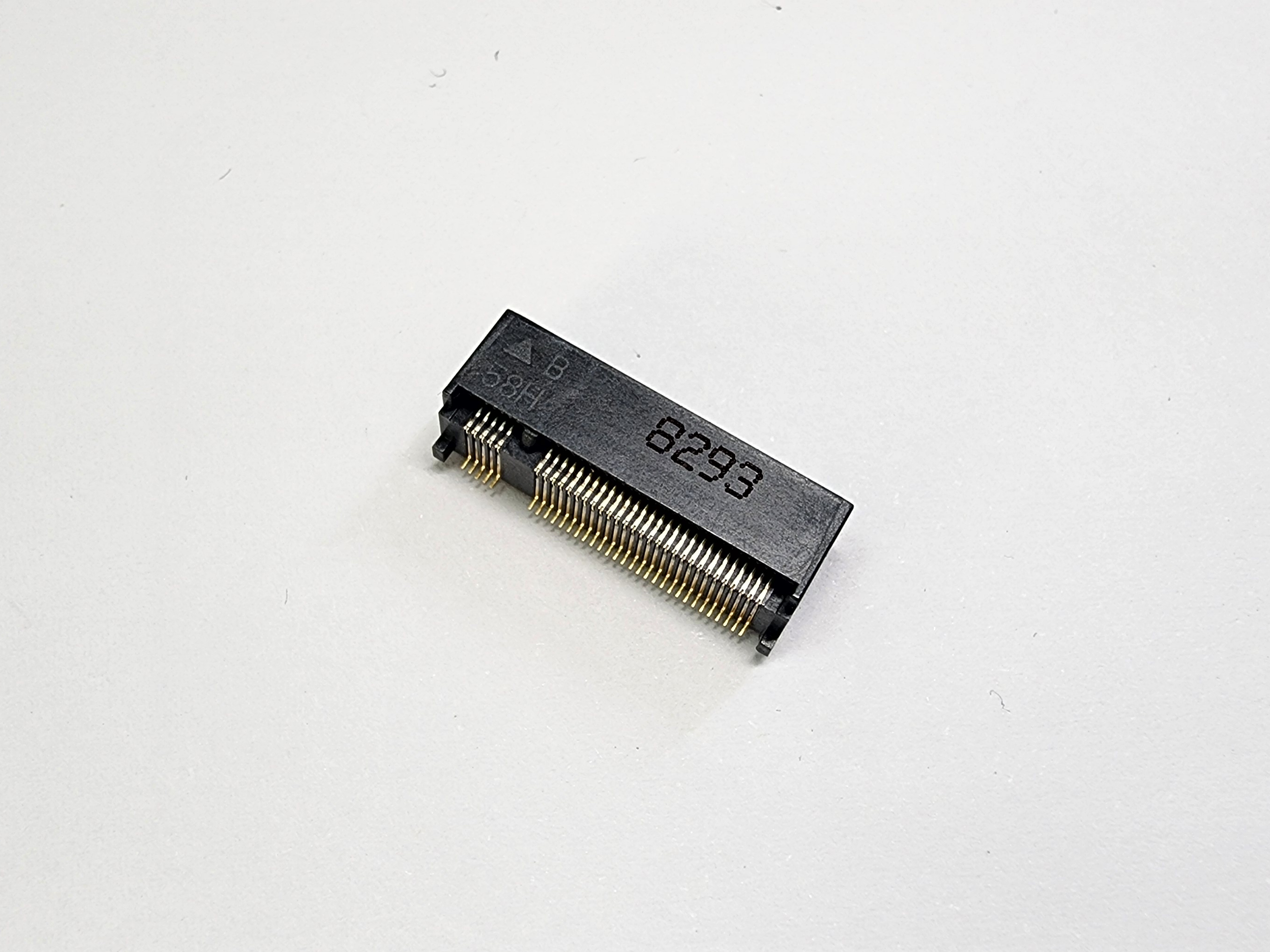 M.2 Card Edge Connector, B Key, 67Pins, Right Angle, SMT, Gold Flash, H=5.80mm, LCP, Black Color