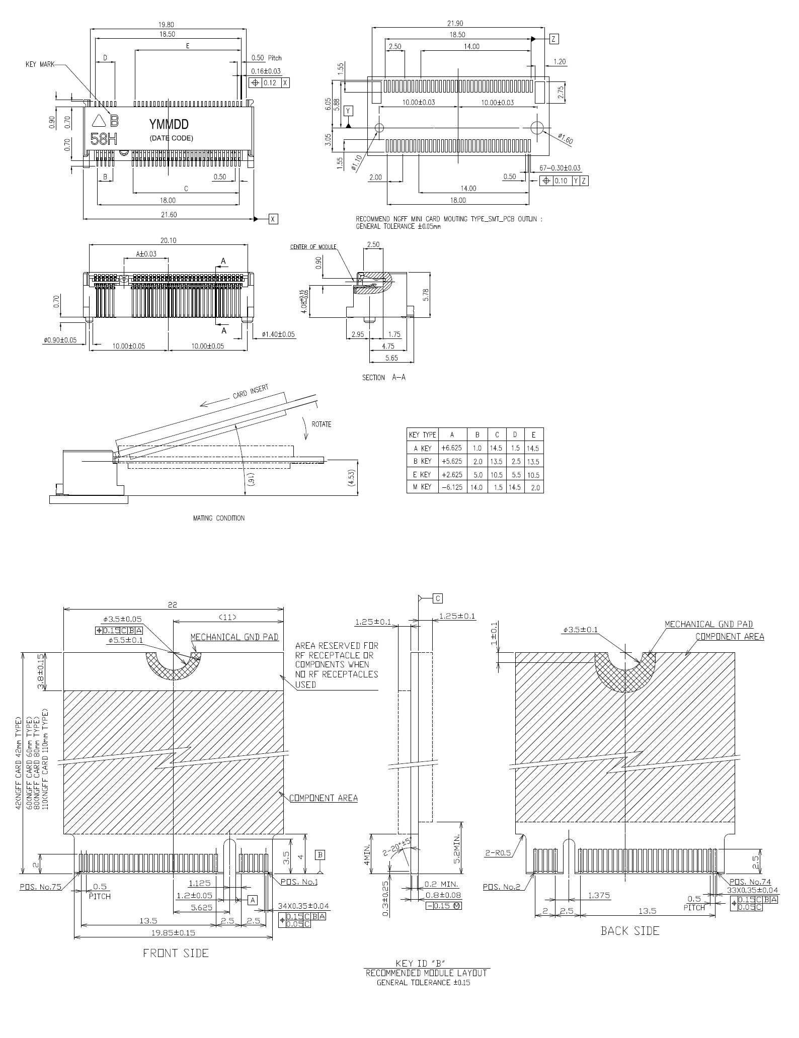 M.2 Card Edge Connector, B Key, 67Pins, Right Angle, SMT, Gold Flash, H=5.80mm, LCP, Black Color