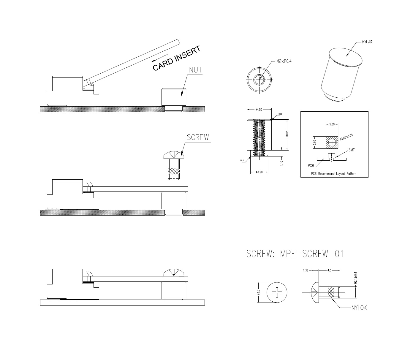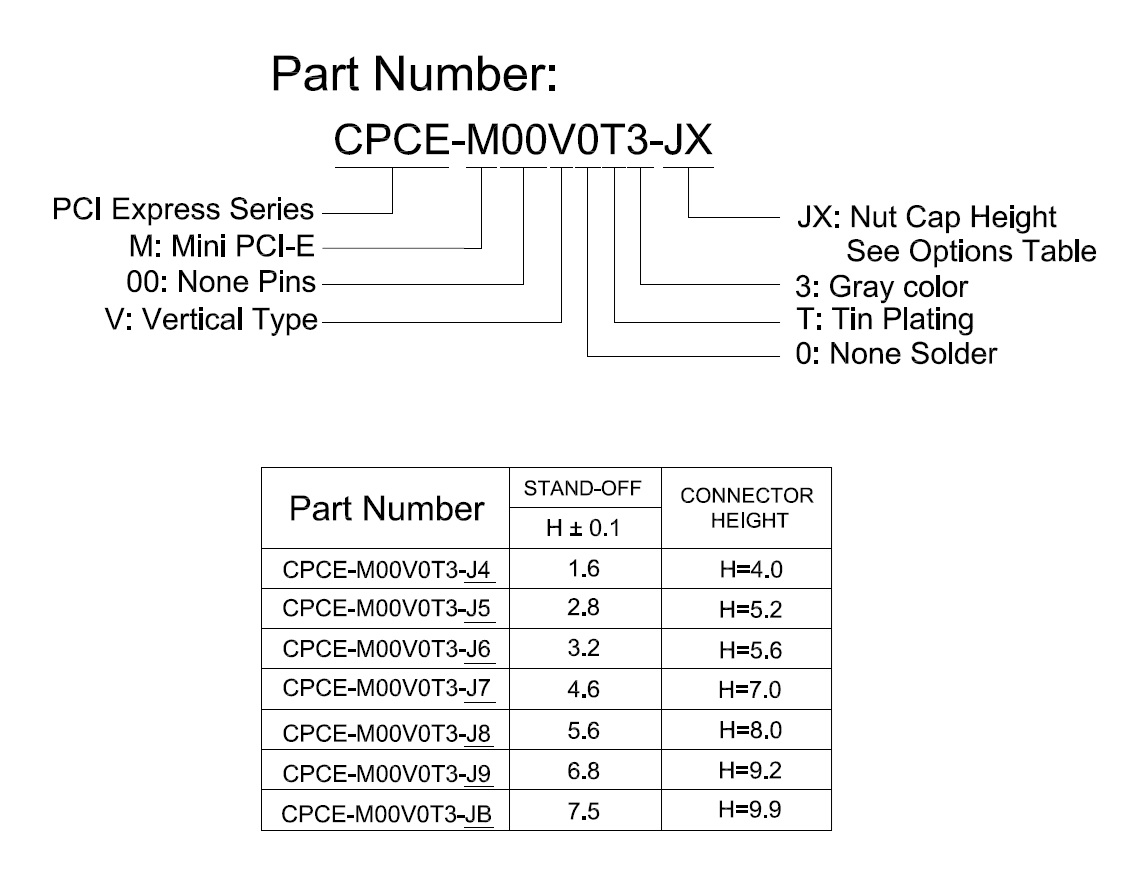 Mini PCI-Express Card Edge Connector, Stand Off, Nut Cap With Mylar, H=5.6mm/3.2mm, Copper Alloy, Tin Plating