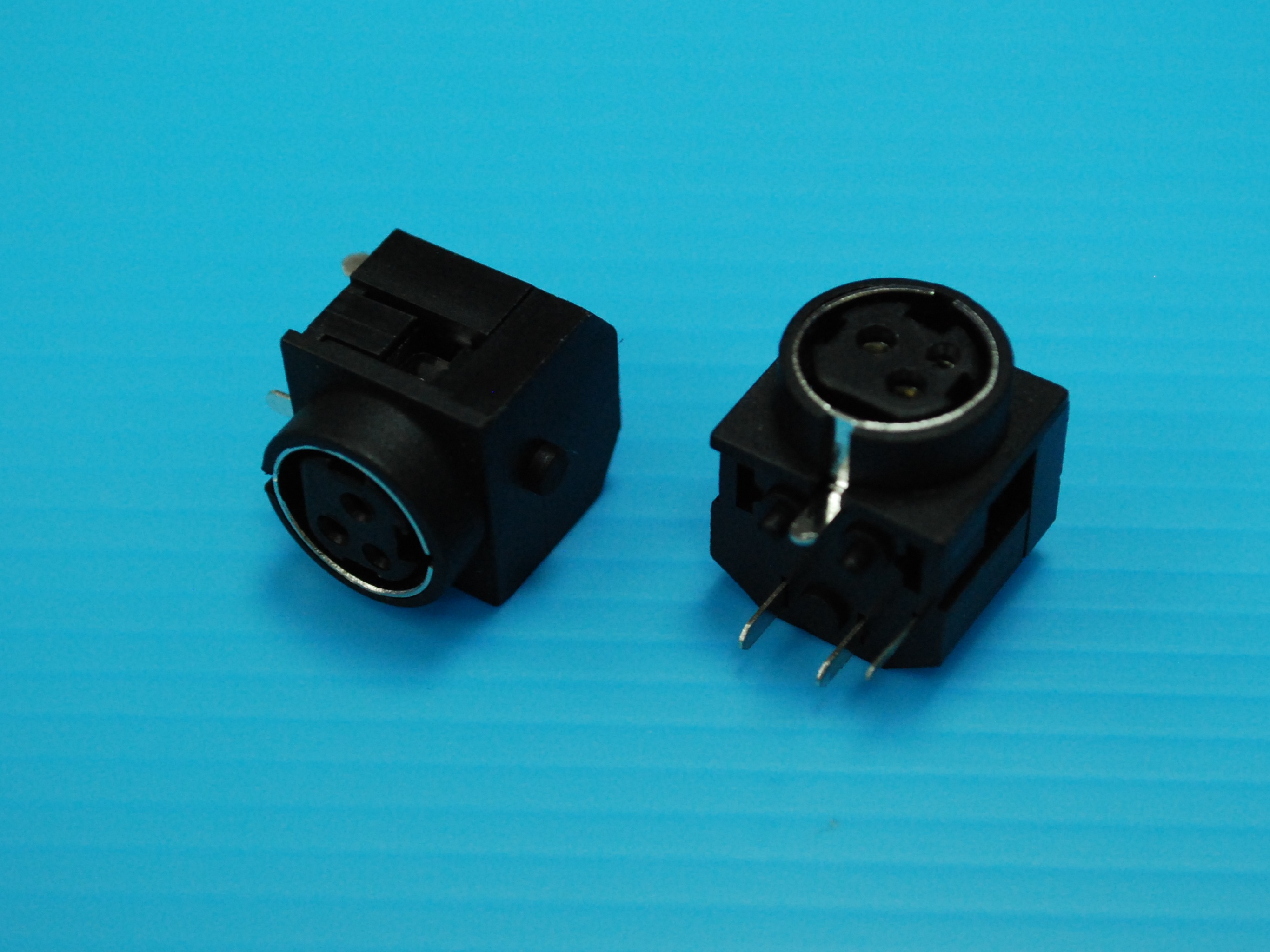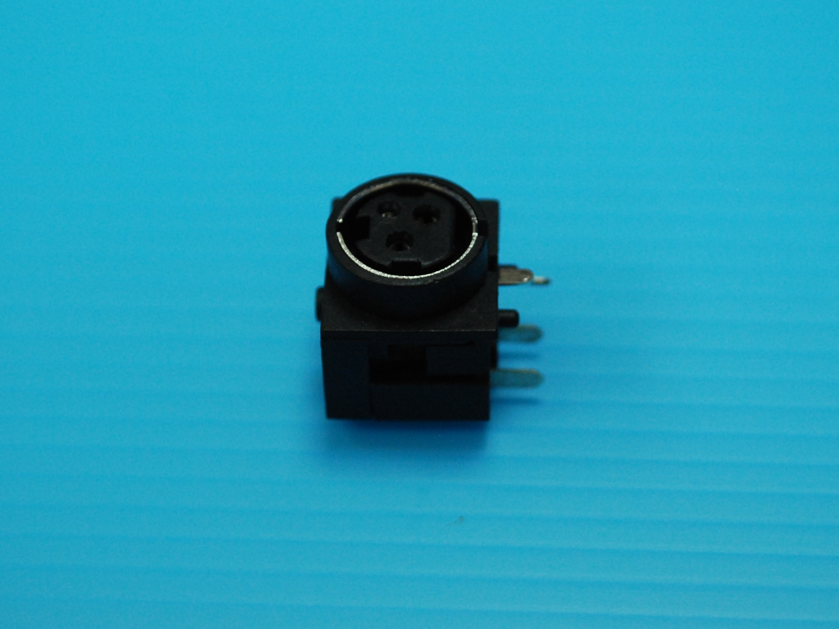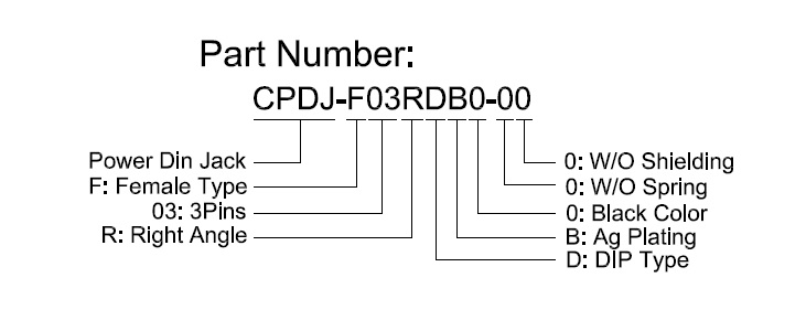Power Din Jack, 3Pins, Female, Right Angle, DIP, without Shielding, PBT, Black Color