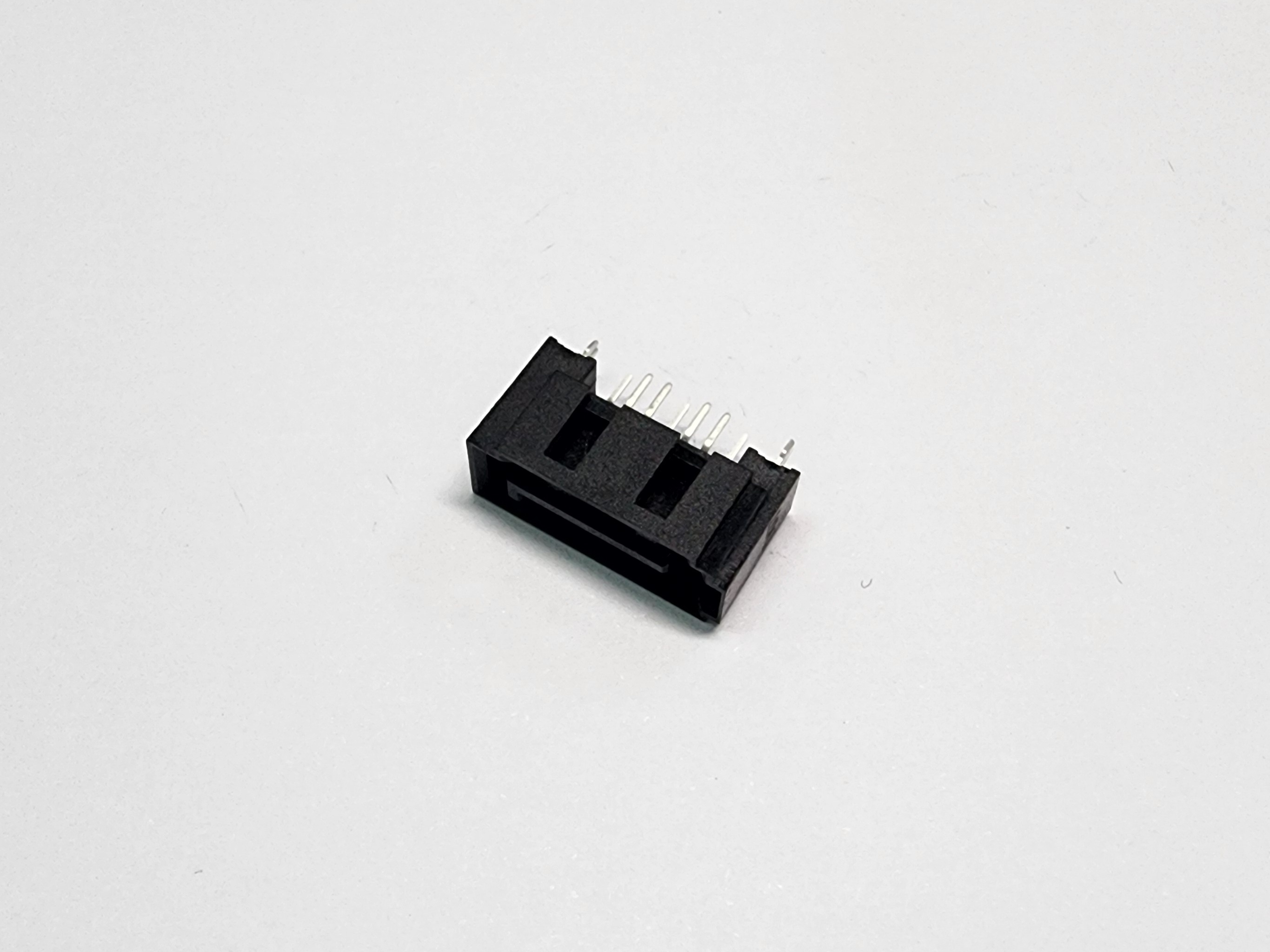 SATA (Serial ATA) 7P, Male, Vertical Type, DIP Type A, D=2.15mm~2.30mm, 15u" Gold Plating, with Shrounded, Nylon 46, Black Color