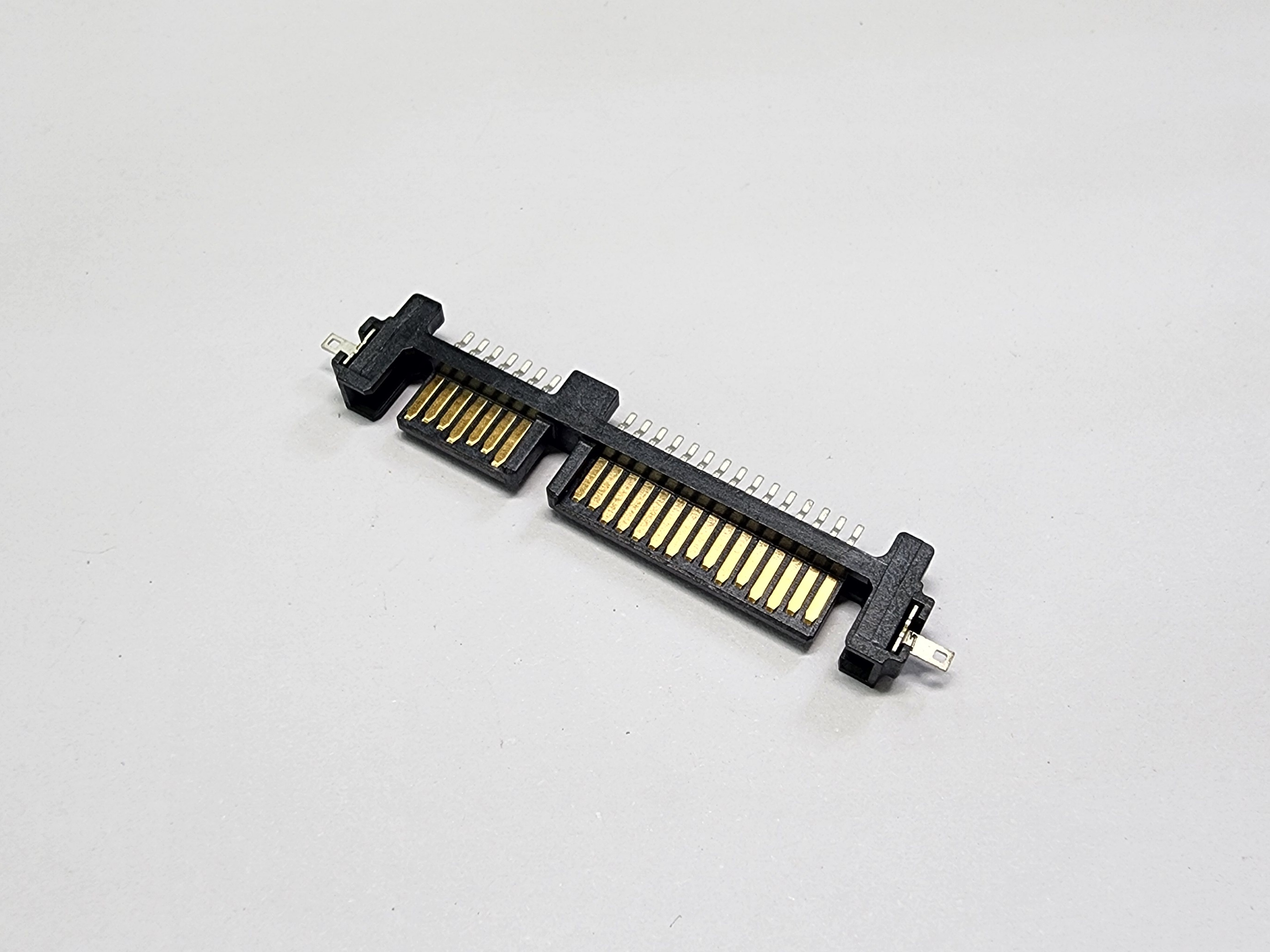 Serial ATA 22Pins, Male, Subside, SMD, 15u" Plating, Reverse Type, Body=9.25mm, H=2.3mm, LCP, Black Color, With Cap