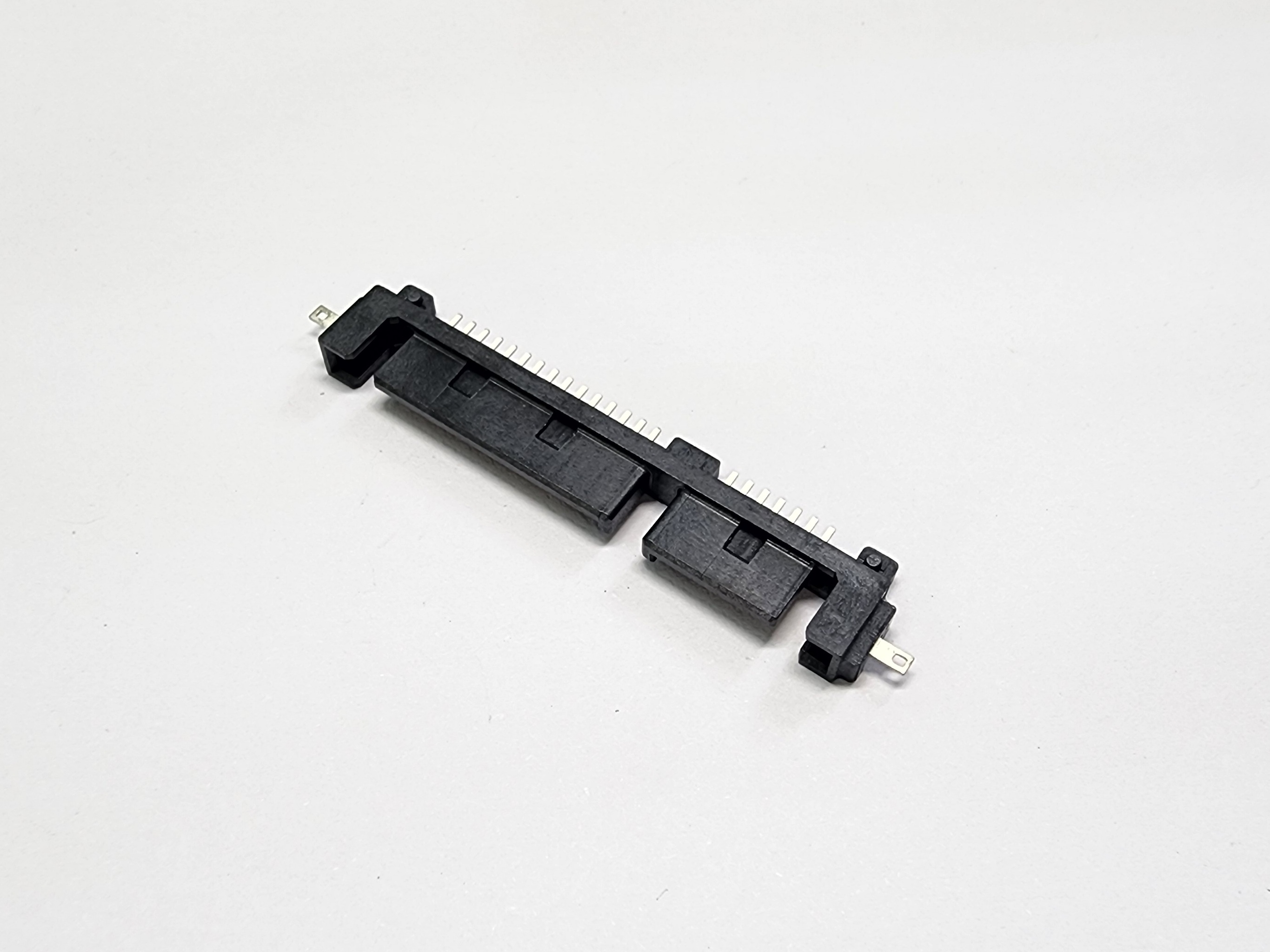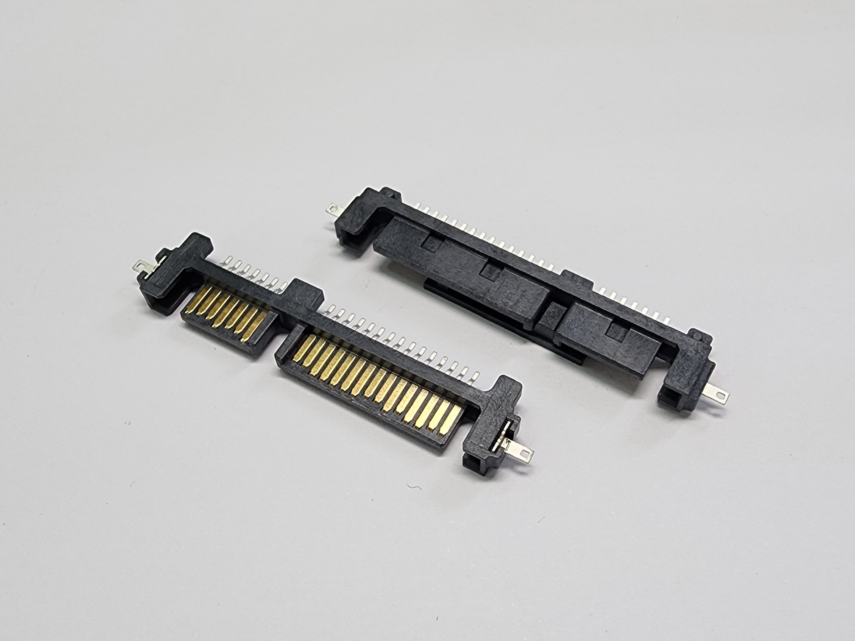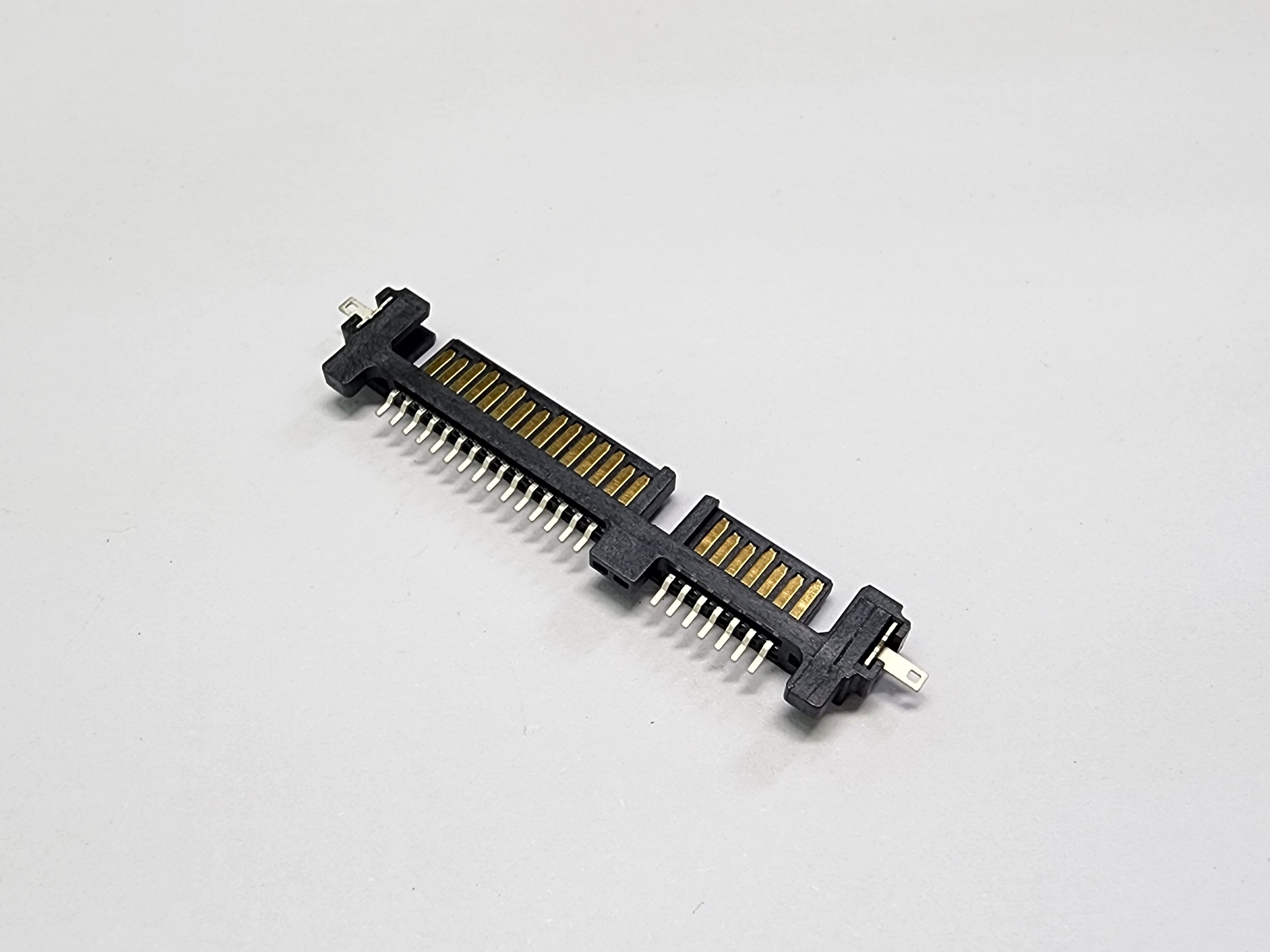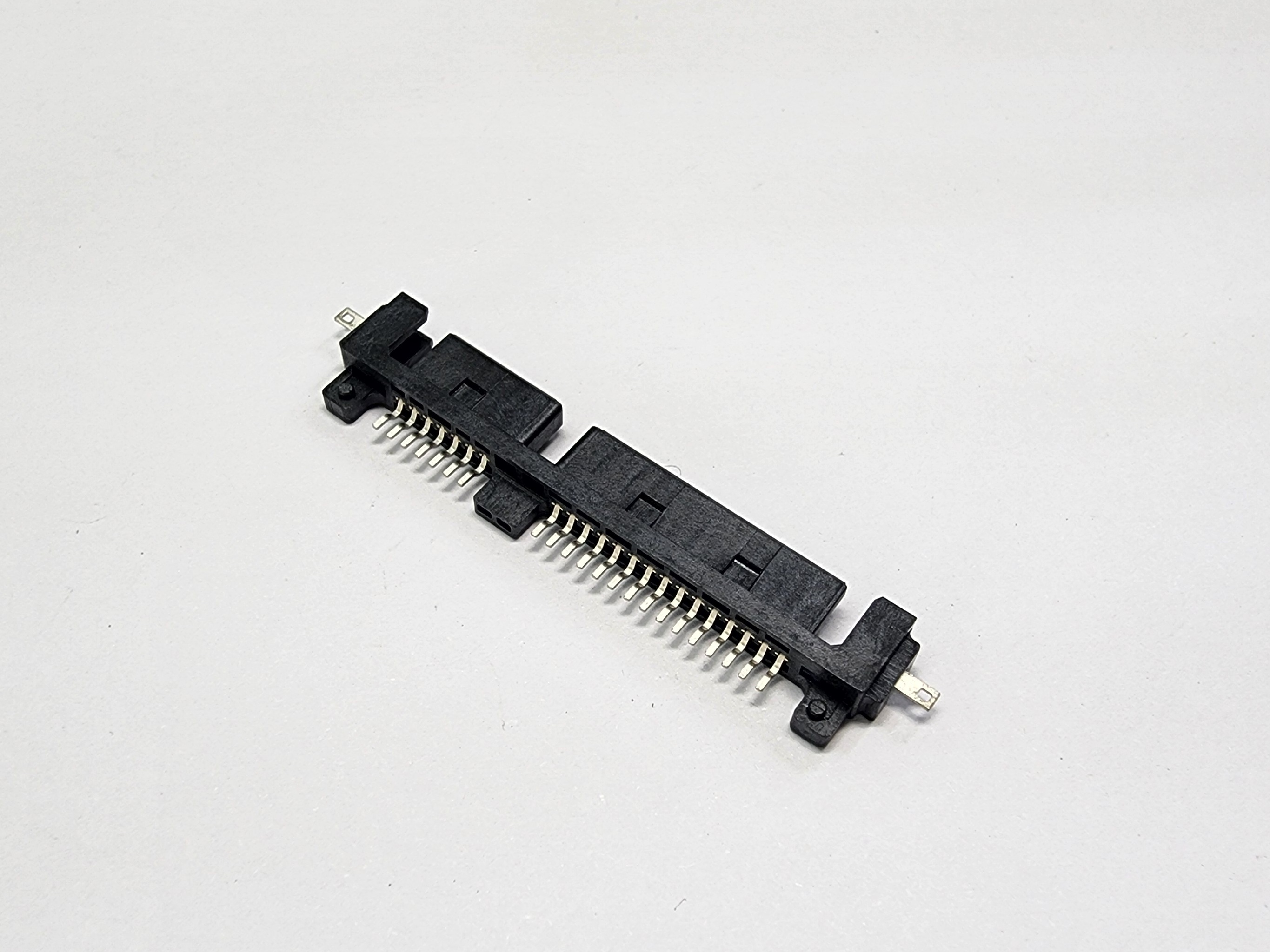 Serial ATA 22Pins, Male, Subside, SMD, 15u" Plating, Reverse Type, Body=9.25mm, H=2.3mm, LCP, Black Color, With Cap