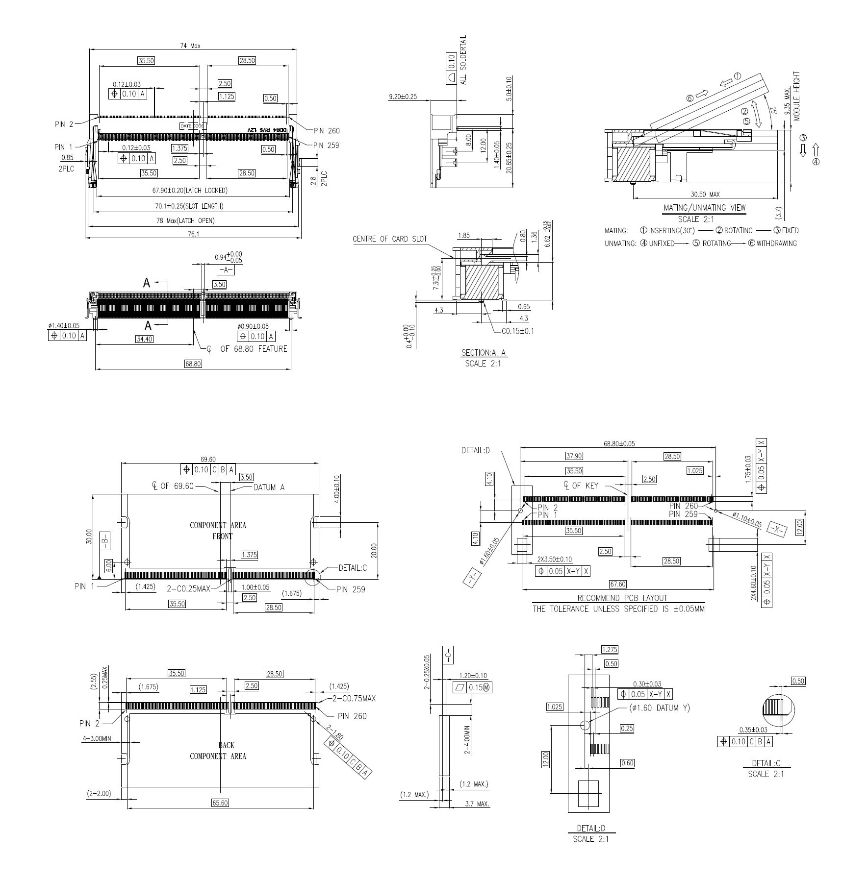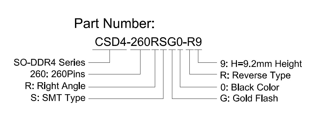 SO-DIMM DDR4, 260Pins, 1.2V, Right Angle, SMT, Gold Flash, Reverse Type, H=9.2mm Height, Black Color