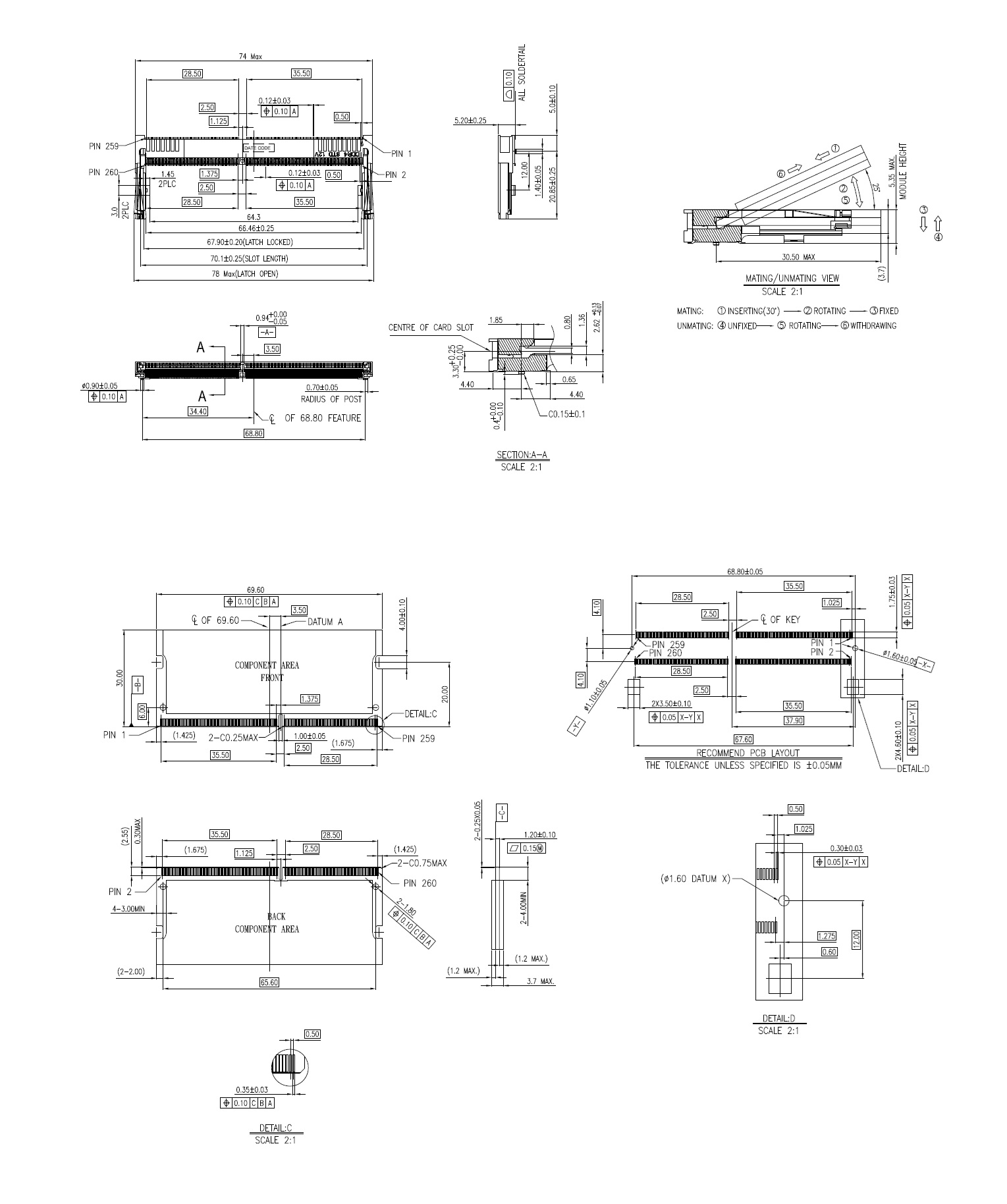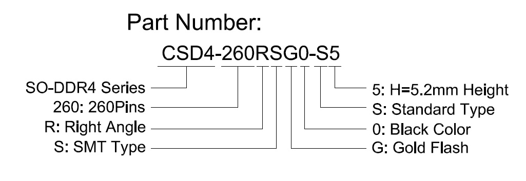 SO-DIMM DDR4, 260Pins, 1.2V, Right Angle, SMT, Gold Flash, Standard Type, H=5.2mm Height, Black Color