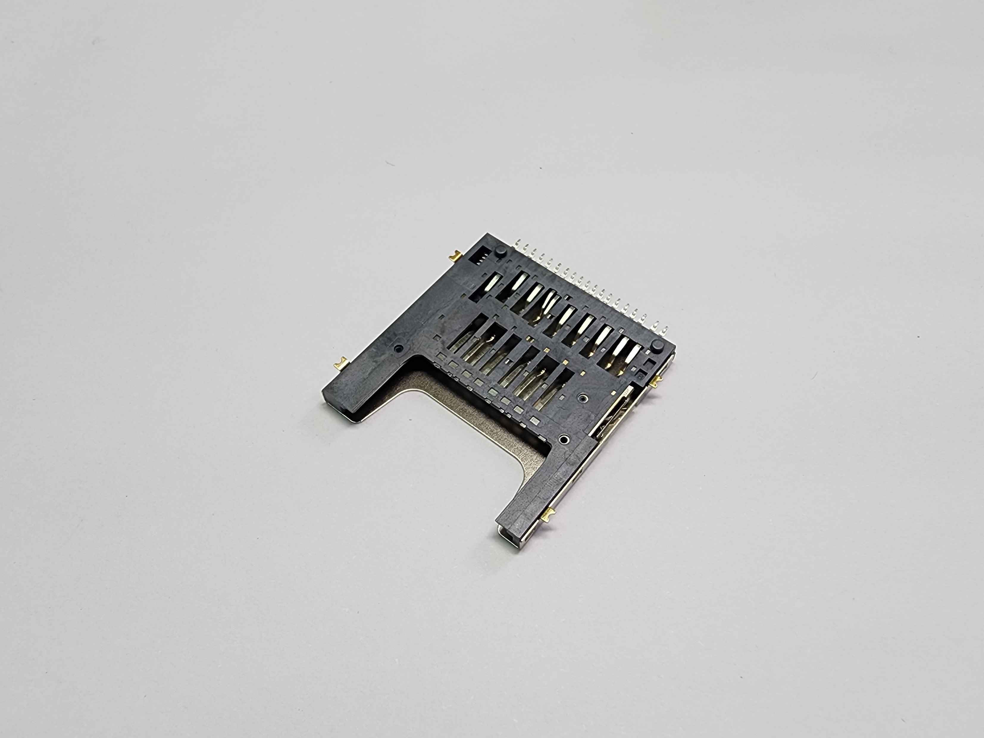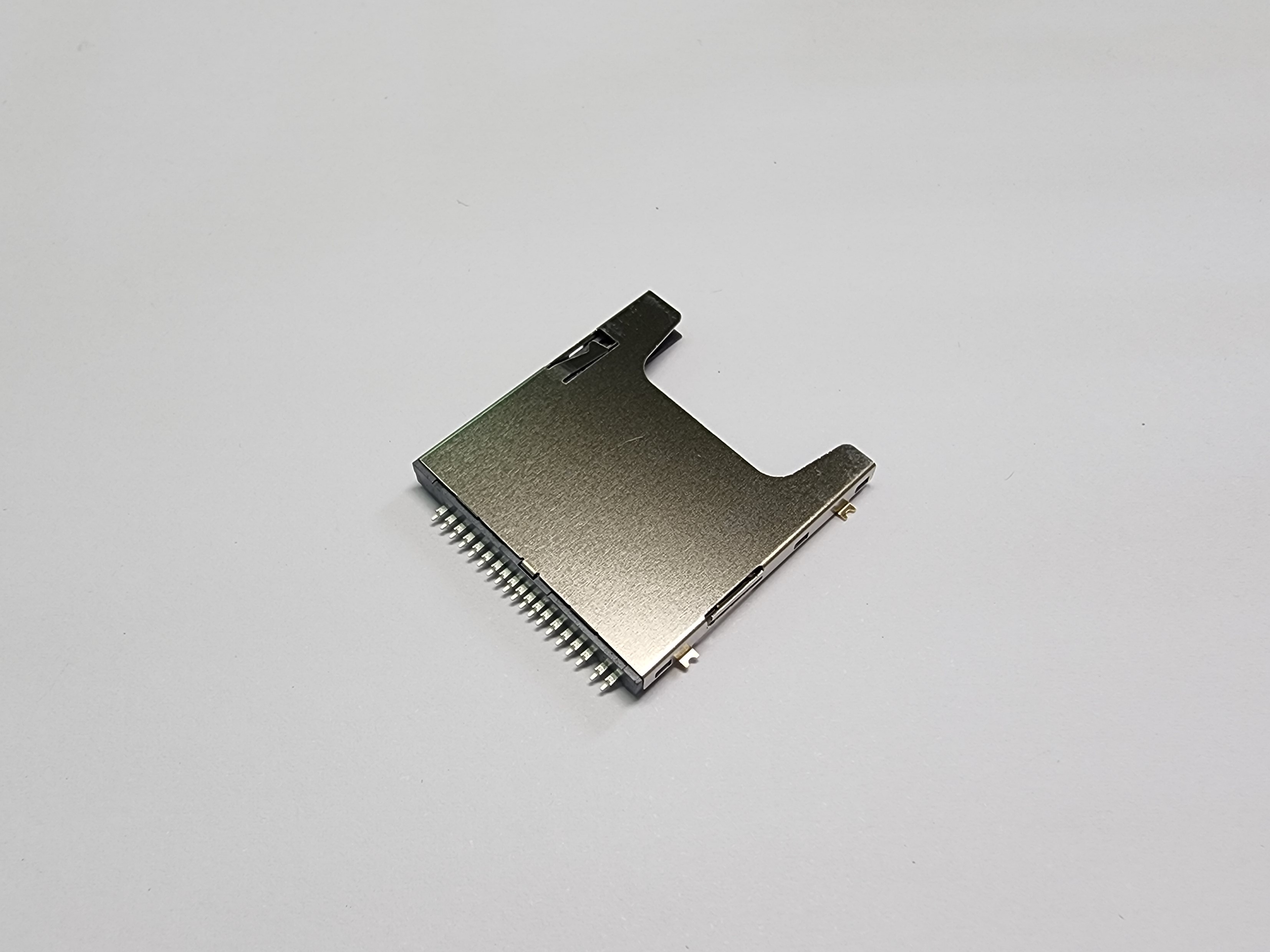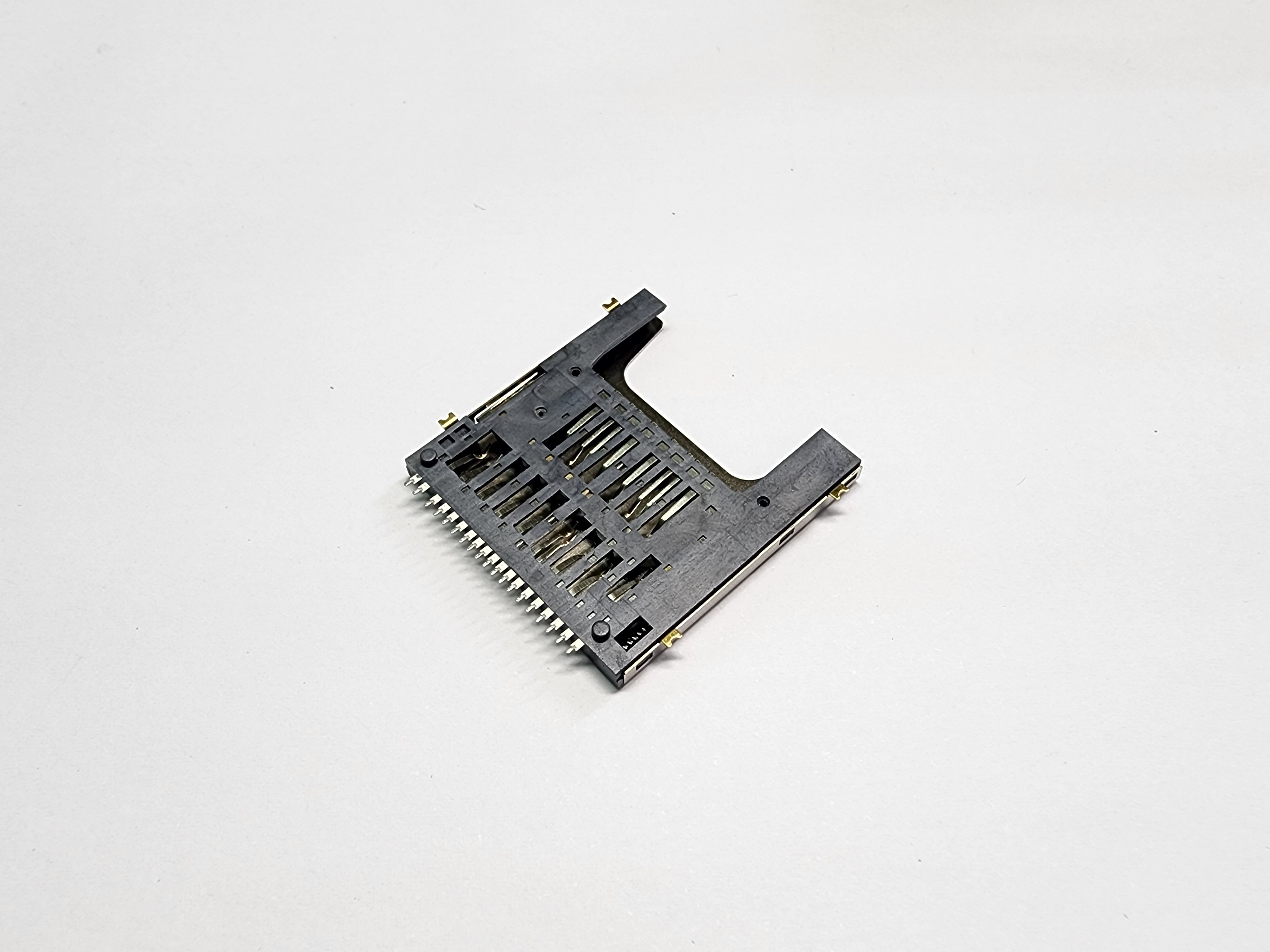 SD Card 4.0 Connector, SMD, Push/Push Type, 19Pins, Standard Type, H=3.00mm Height, L=29.40mm, With Posts 22.80mm, With Metal Shielding, LCP, Black Color