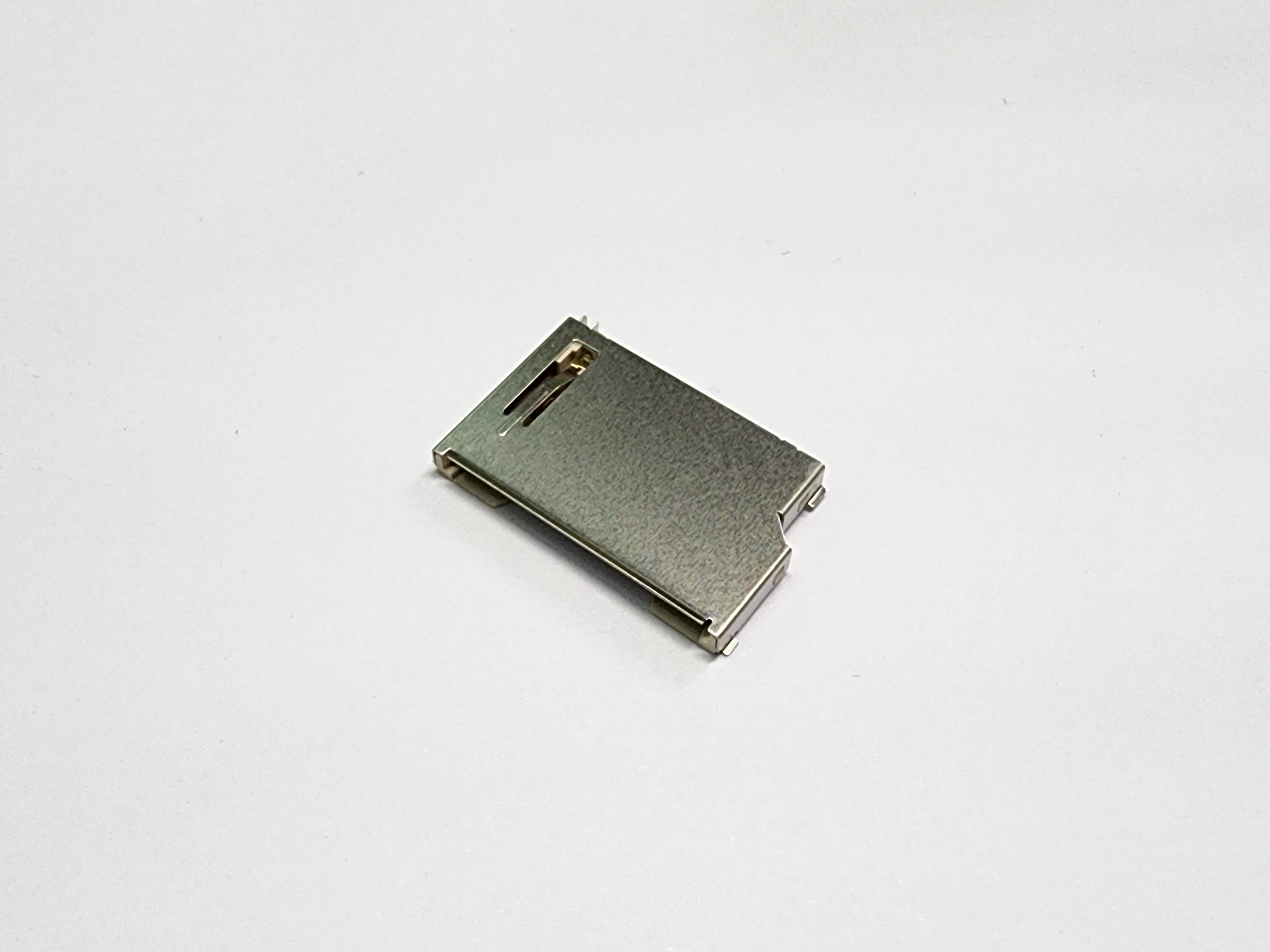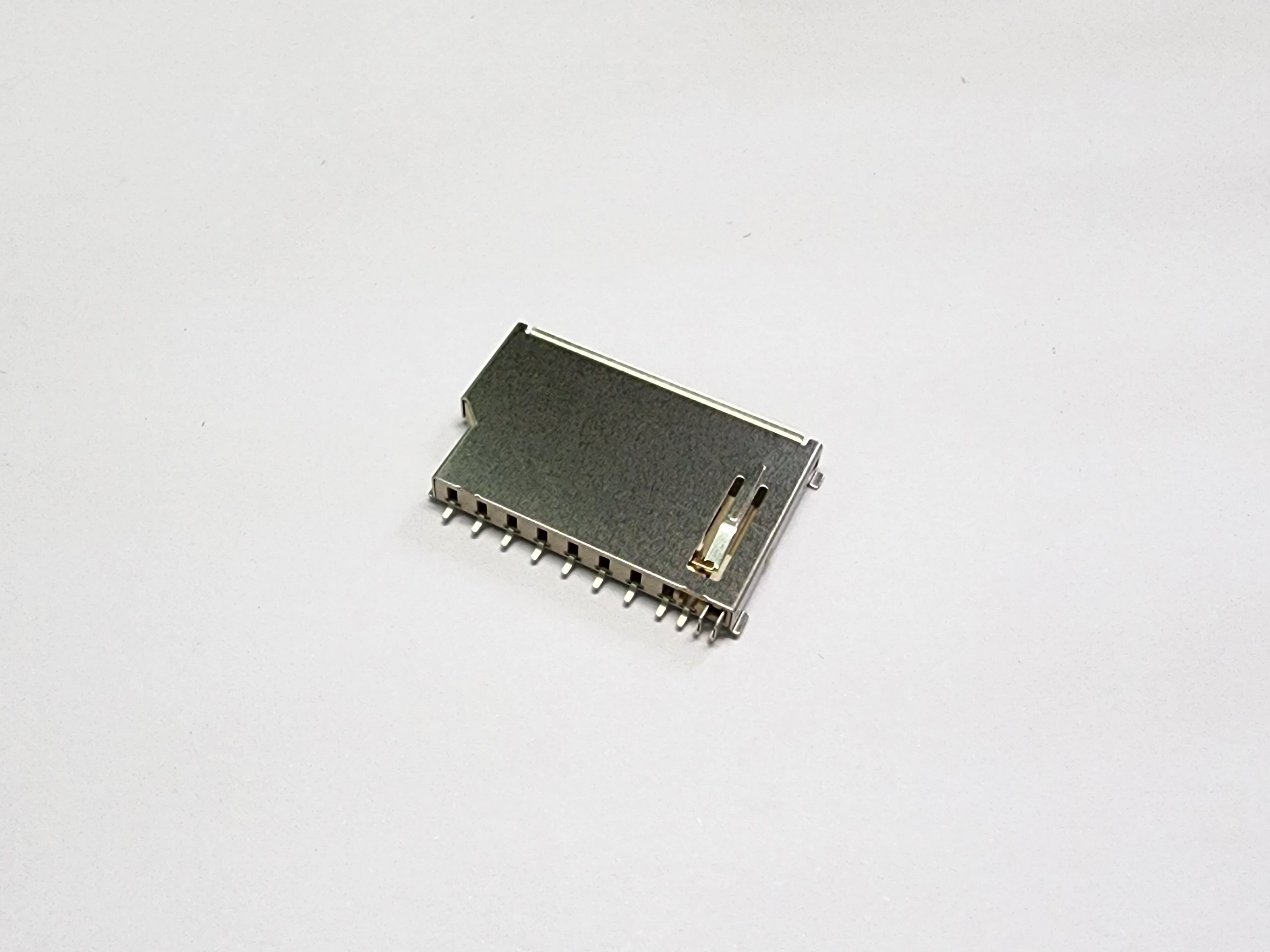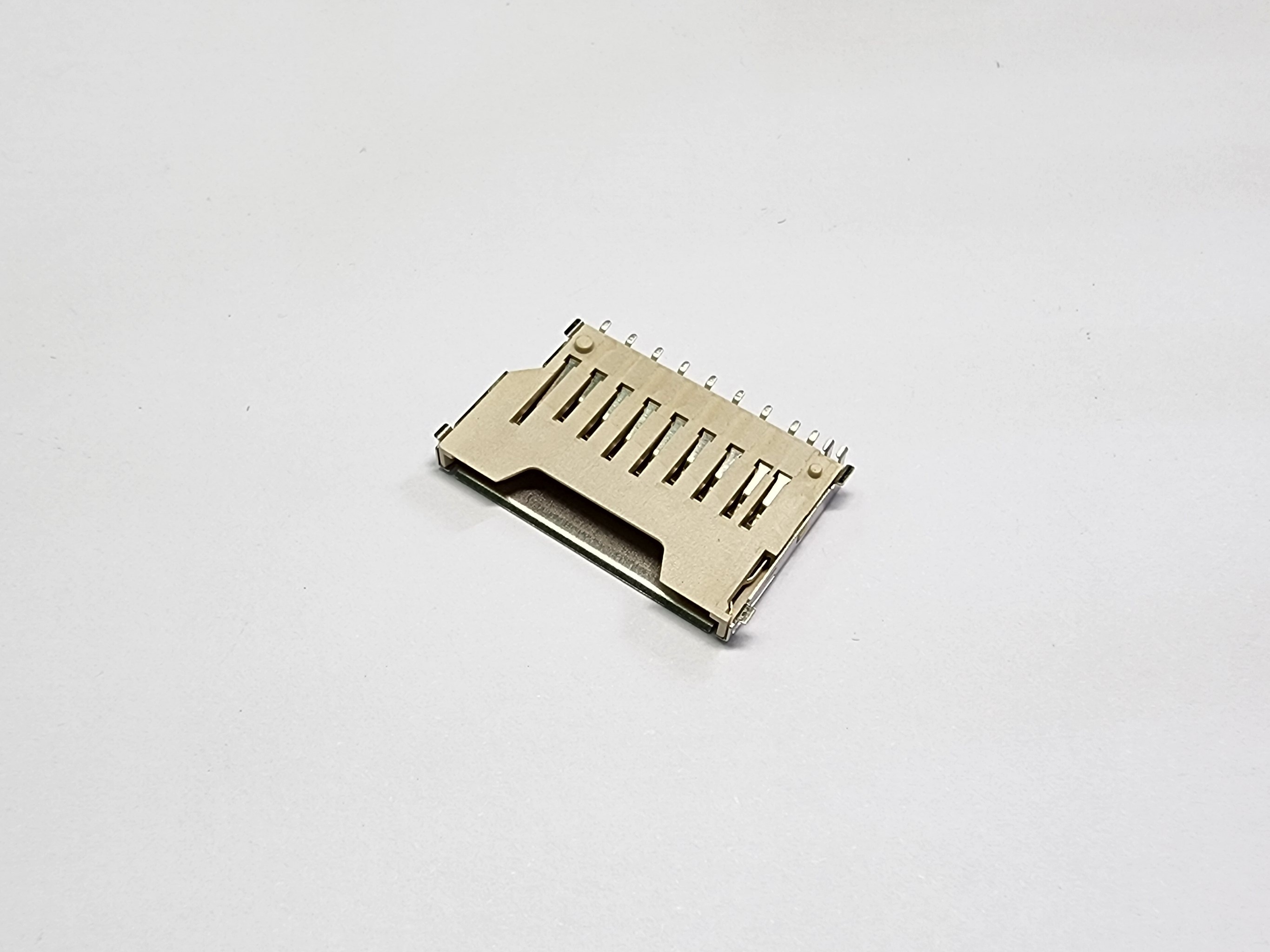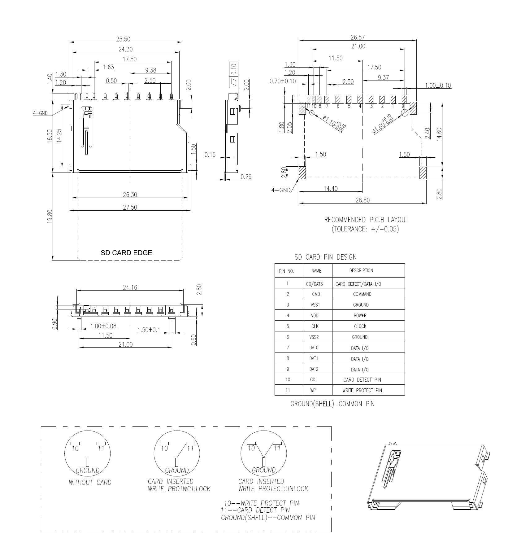 SD Card Connector, SMD, Push/Pull Type, 11Pins, Standard, Pitch 2.50mm, H=2.80mm, W=26.30mm, L=16.50mm, With Shell, With Posts, With Pads, Gold Flash, White Color