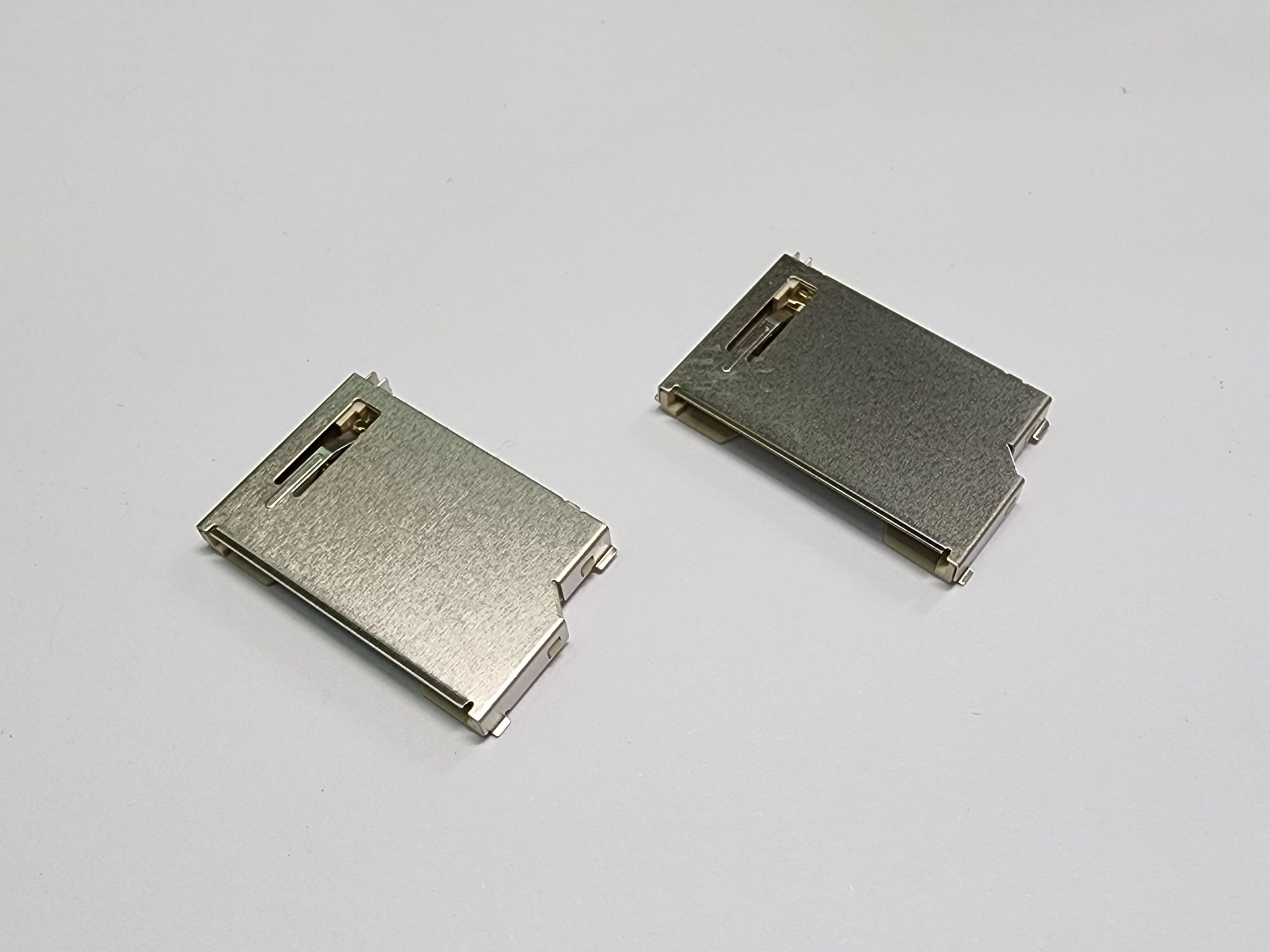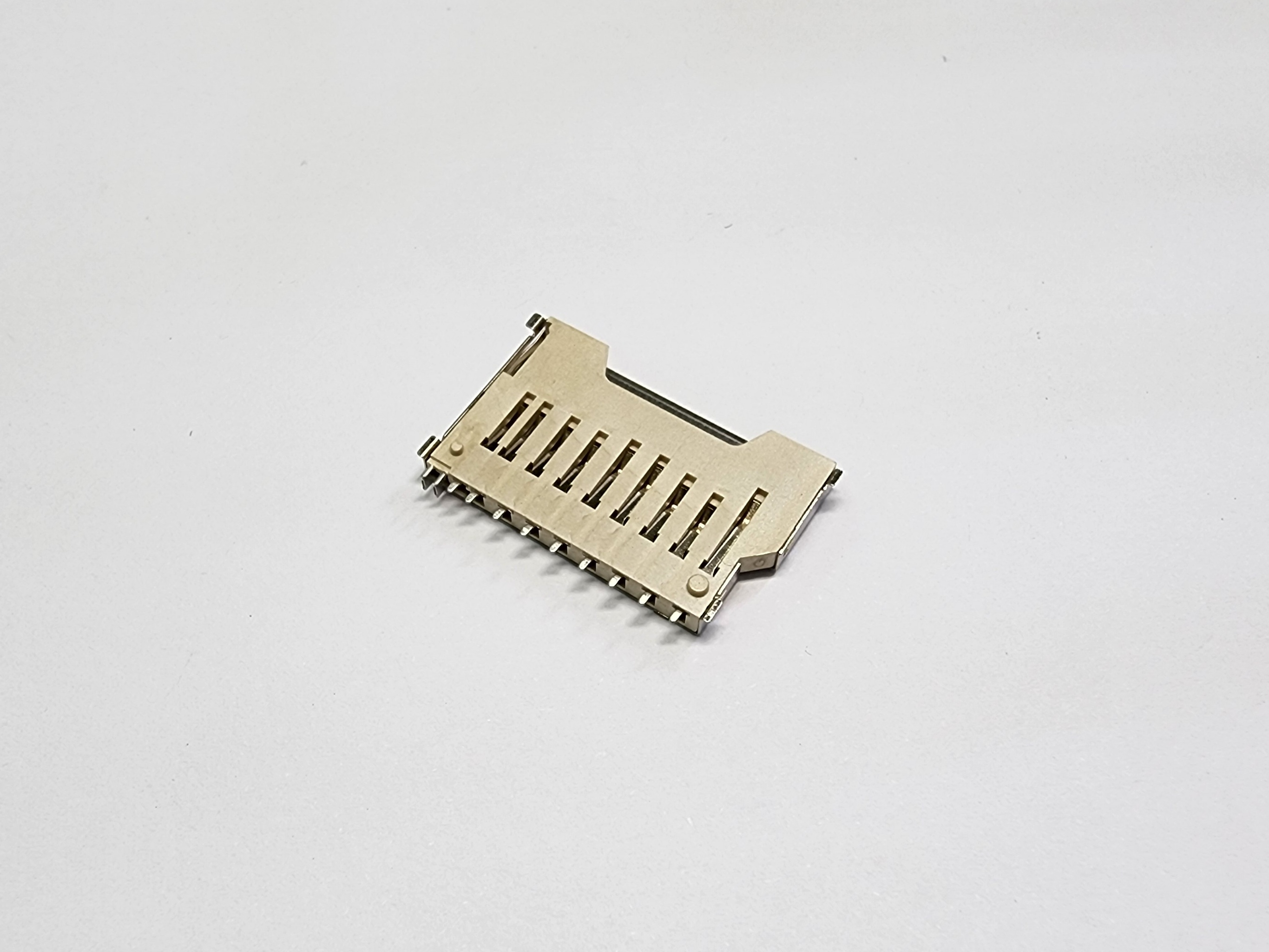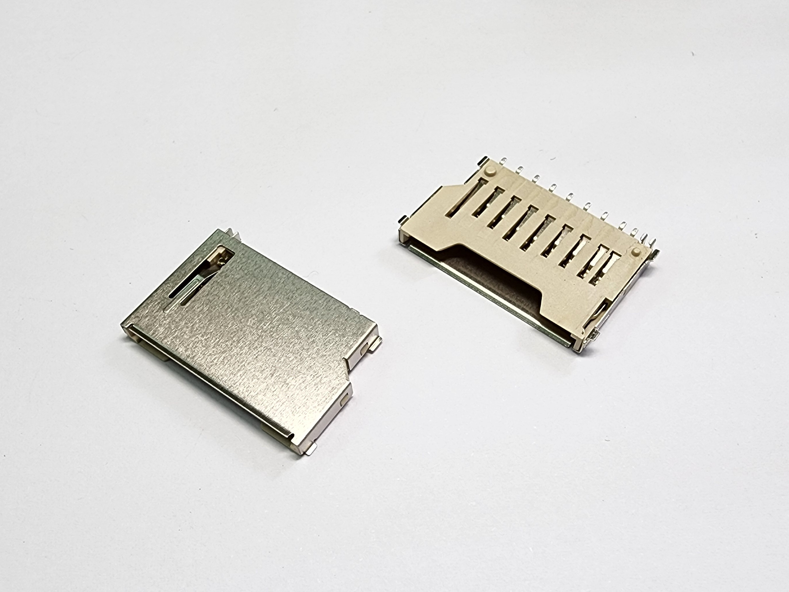 SD Card Connector, SMD, Push/Pull Type, 11Pins, Standard, Pitch 2.50mm, H=2.80mm, W=26.30mm, L=16.50mm, With Shell, With Posts, With Pads, Gold Flash, White Color