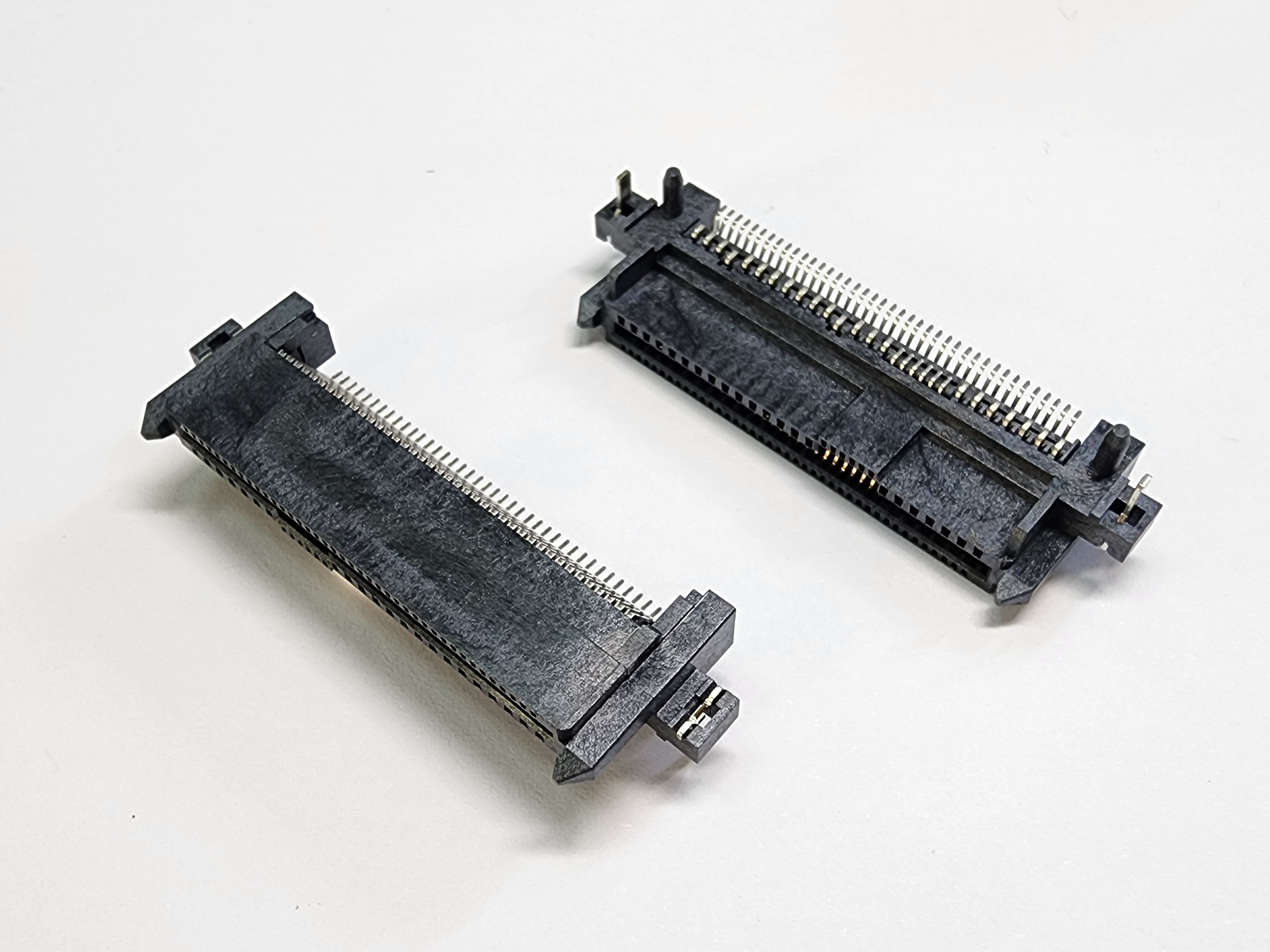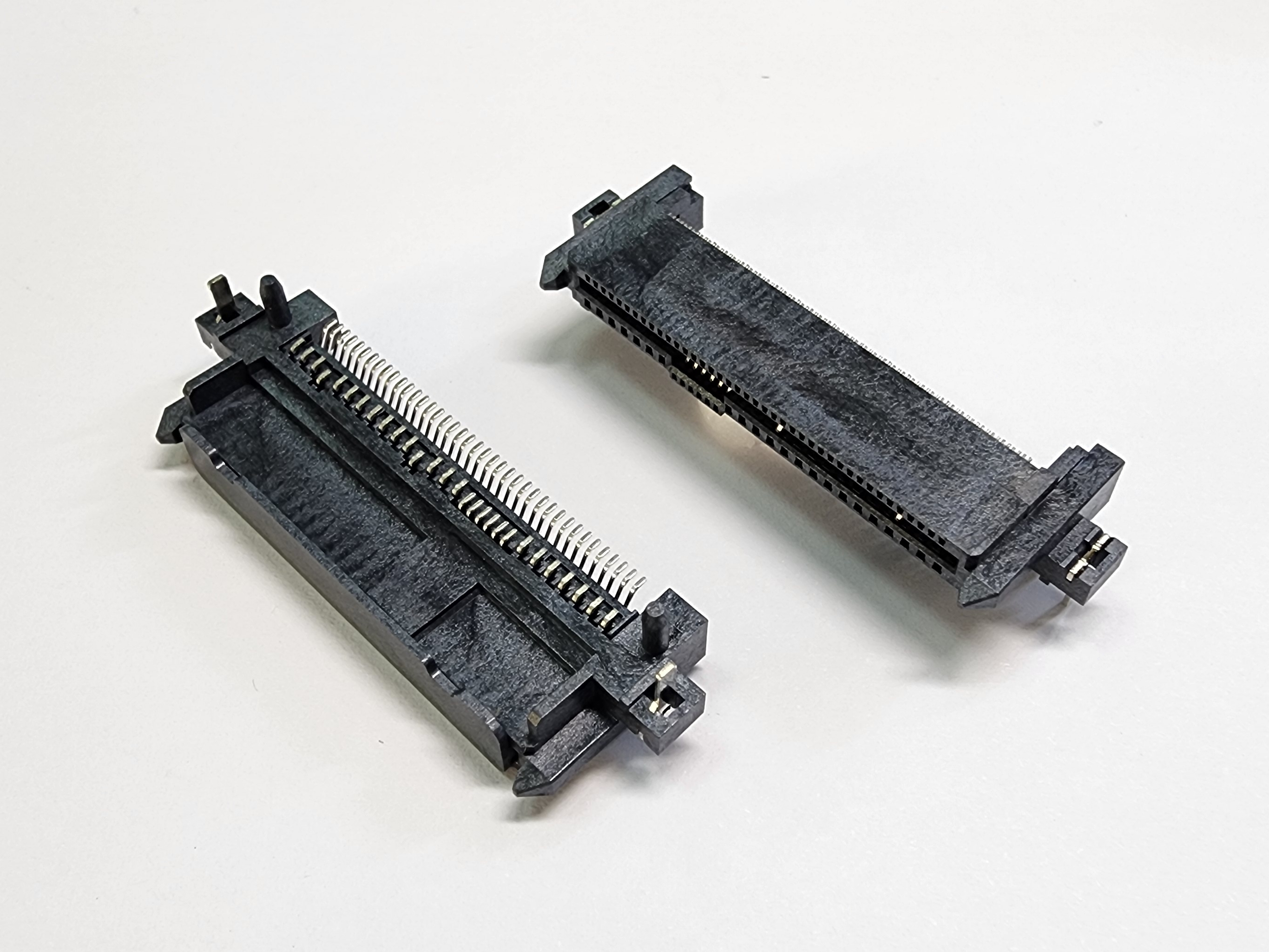 SFF-8639, U.2 Connector, 68Pins, Female, Right Angle, SMT, 30u" Plating, H=6.50mm, With Metal Posts, LCP, Black Color