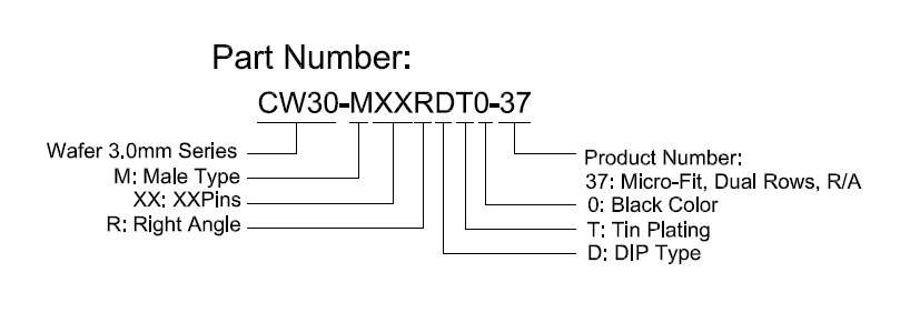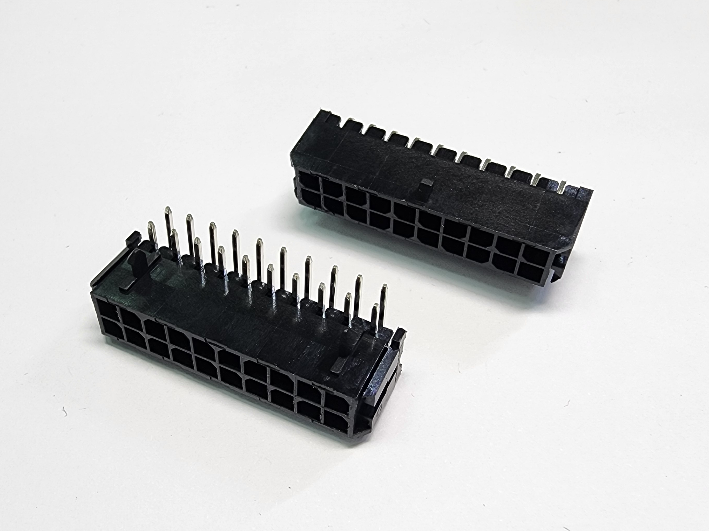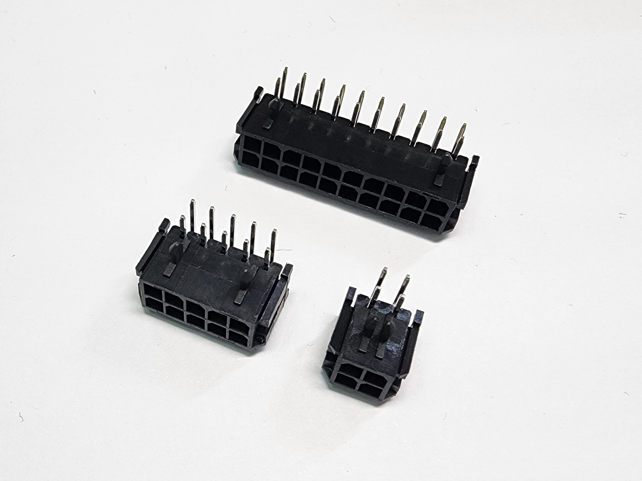Micro-Fit, Double Rows, 3.0mm Wire to Board Power Connector, 2x1~2x12Pins, Right Angle, DIP, With Posts, Black Color