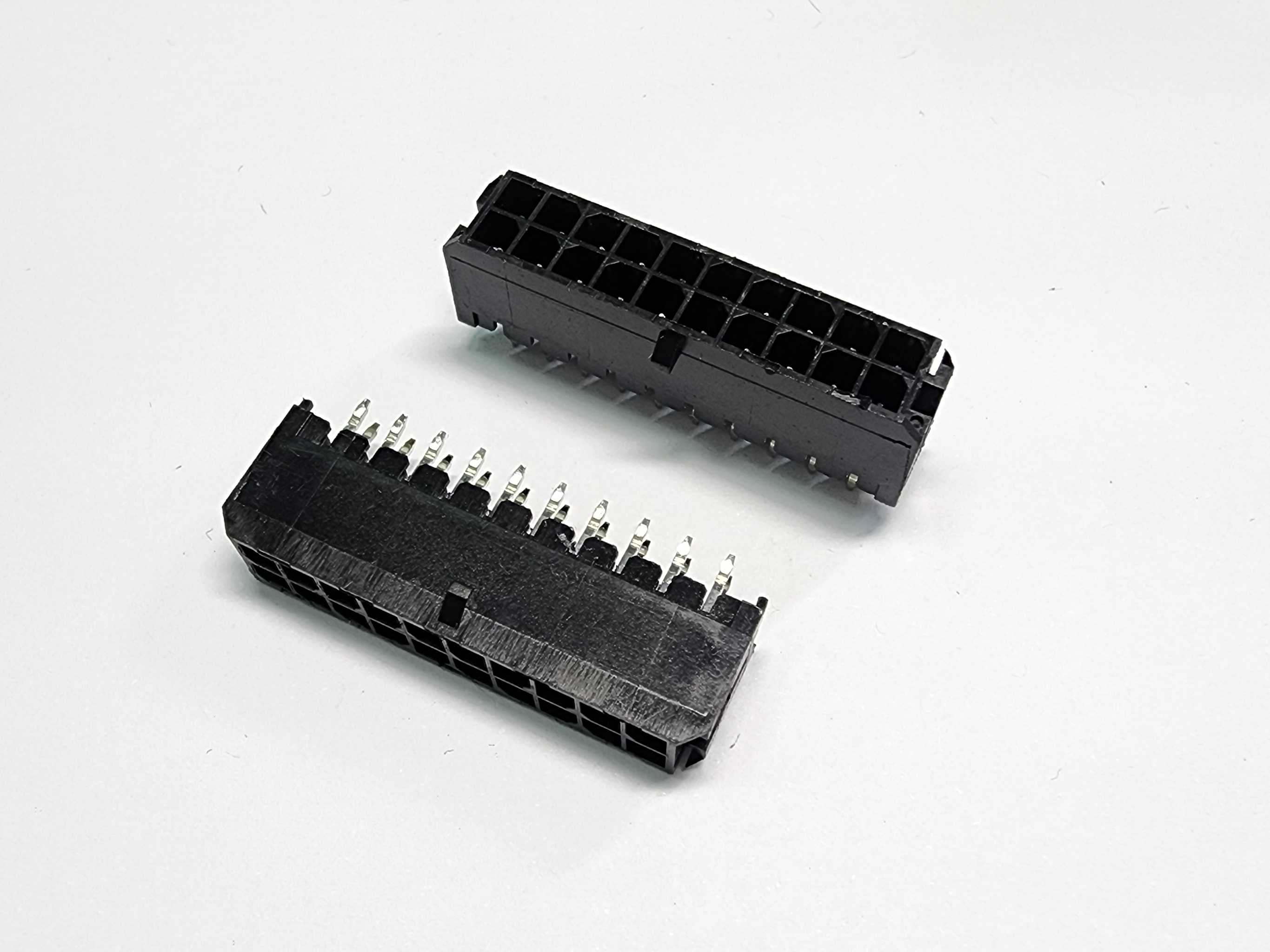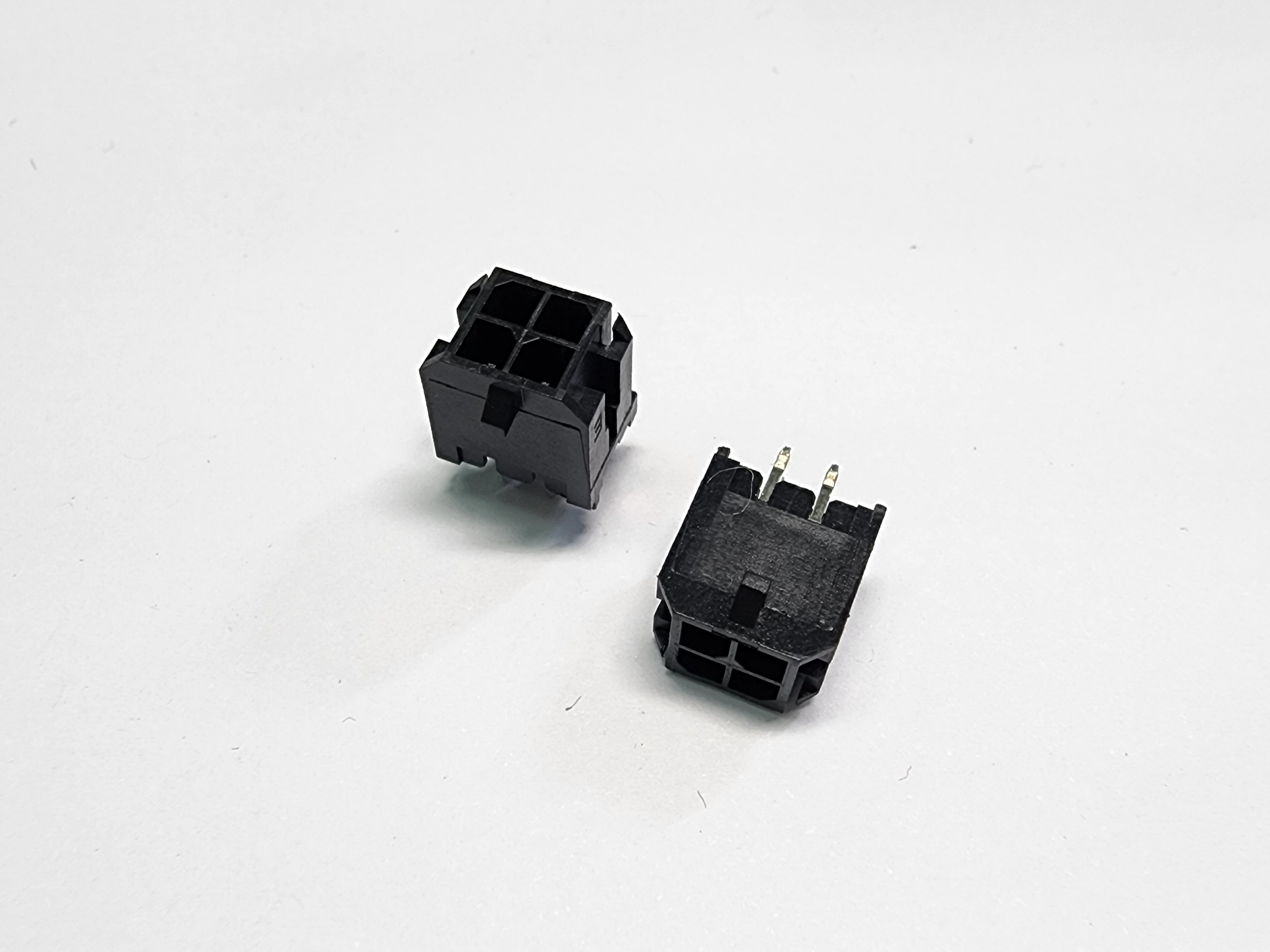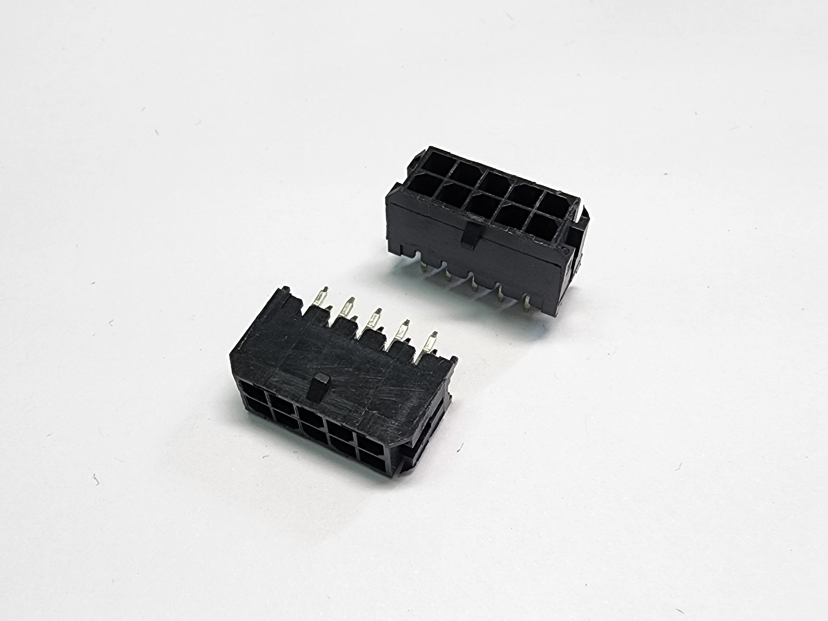 Micro-Fit, Double Rows, 3.0mm Wire to Board Power Connector, 2x1~2x12Pins, Right Angle, DIP, With Posts, Black Color