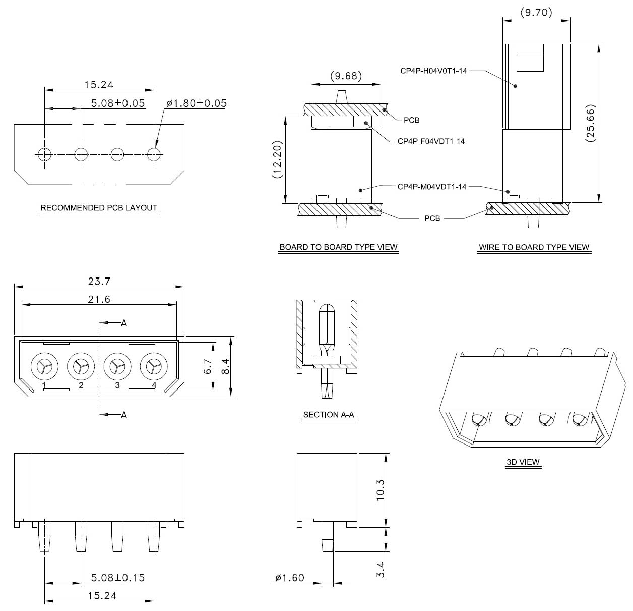 - Housing: Nylon 66, UL 94V-2 Rated.