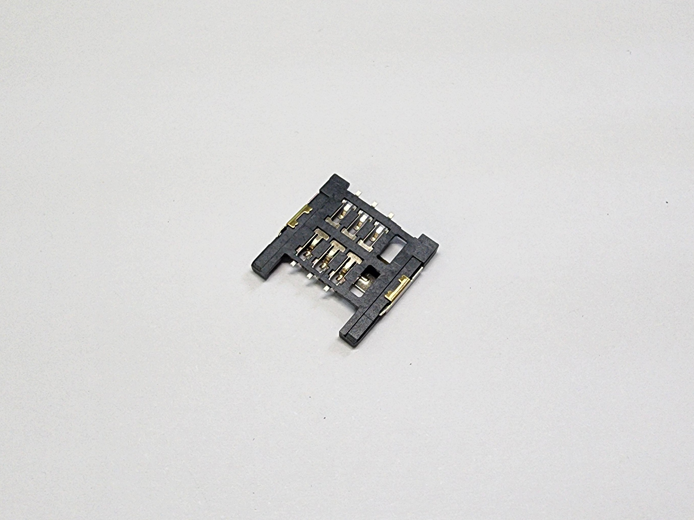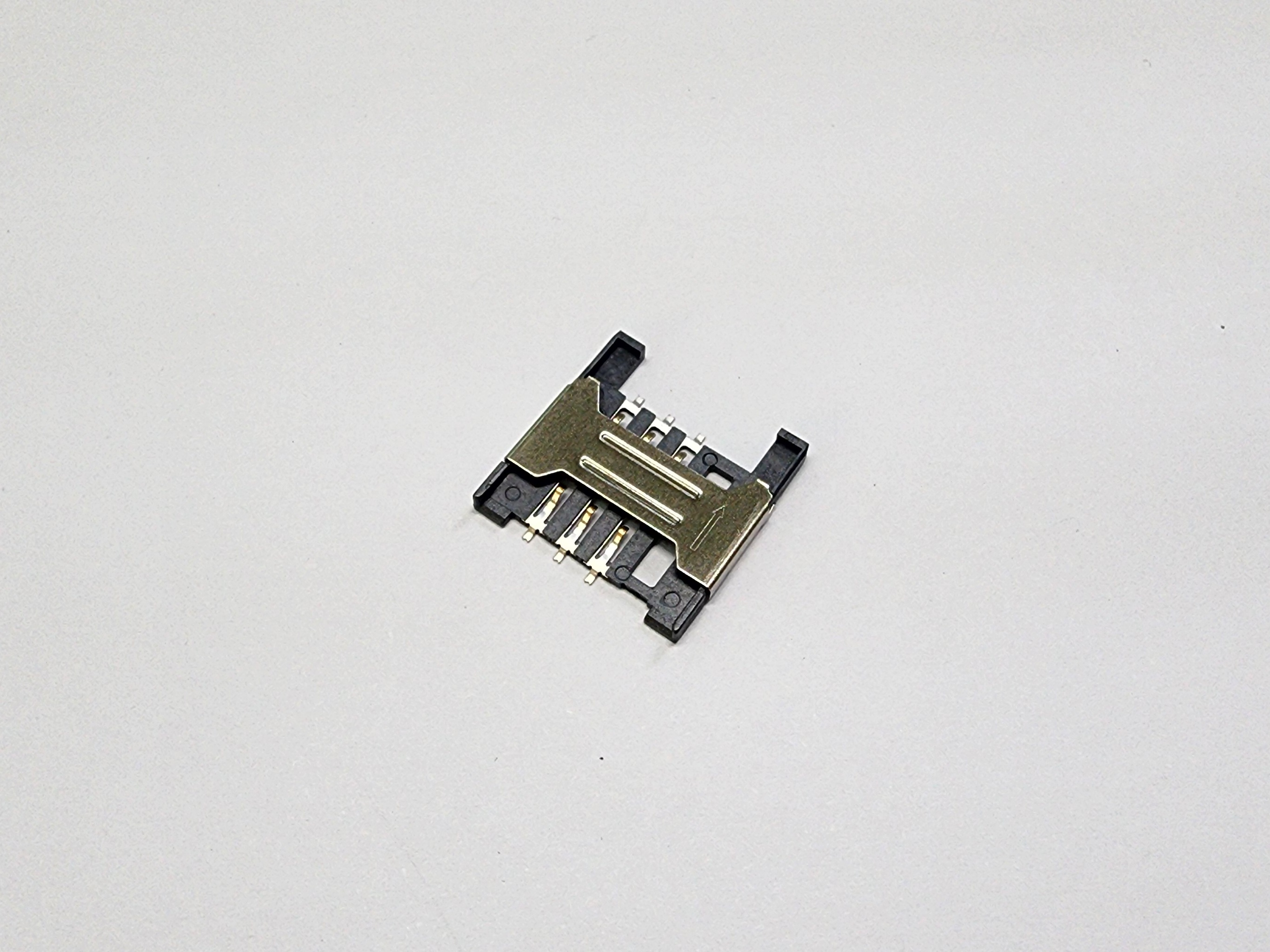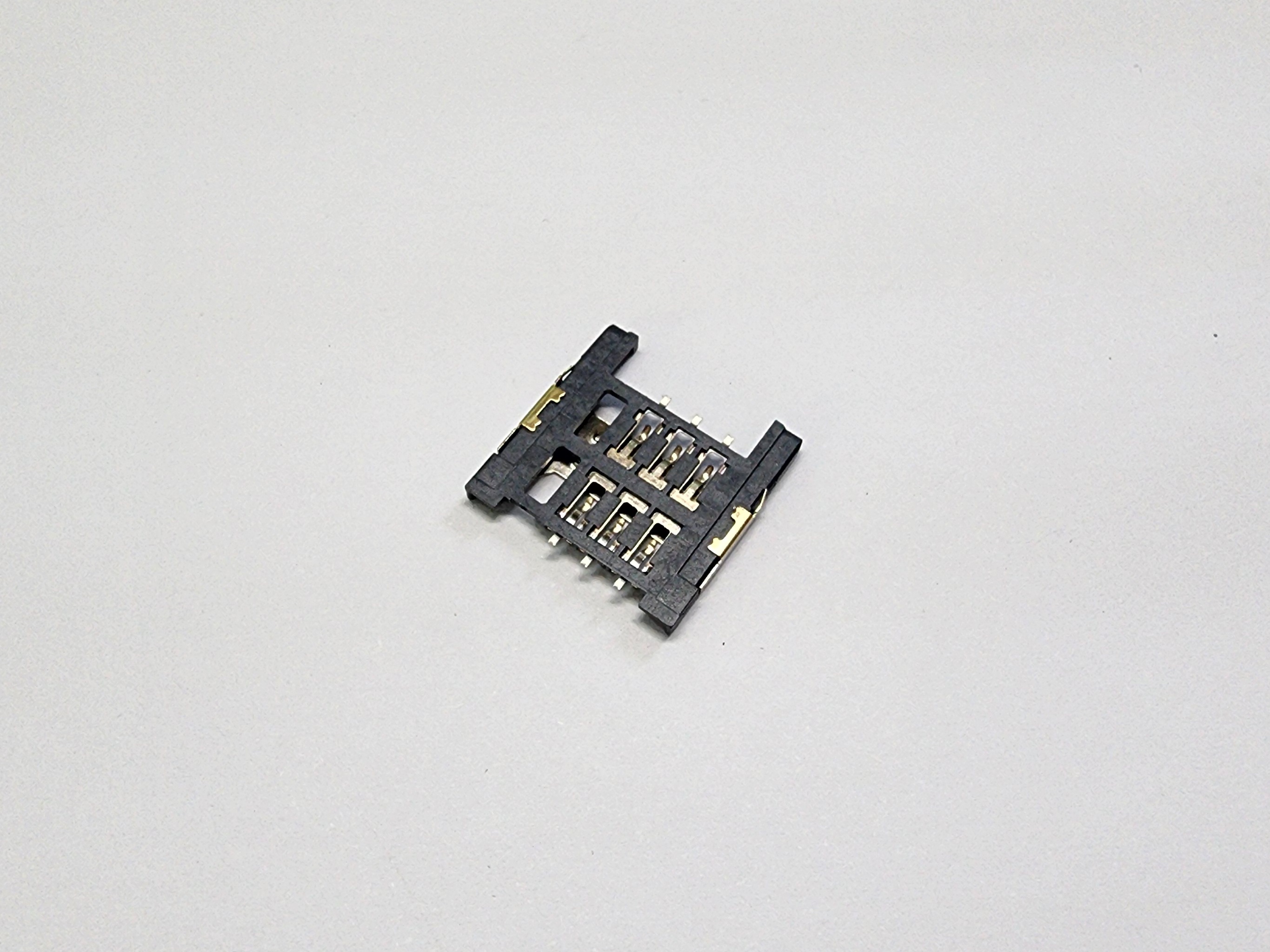 SIM Card Socket, 6Pins, Push/Pull Type, Pitch 2.54mm, H=1.85mm, Without Post, With Metal Shell, Gold Flash, Black Color