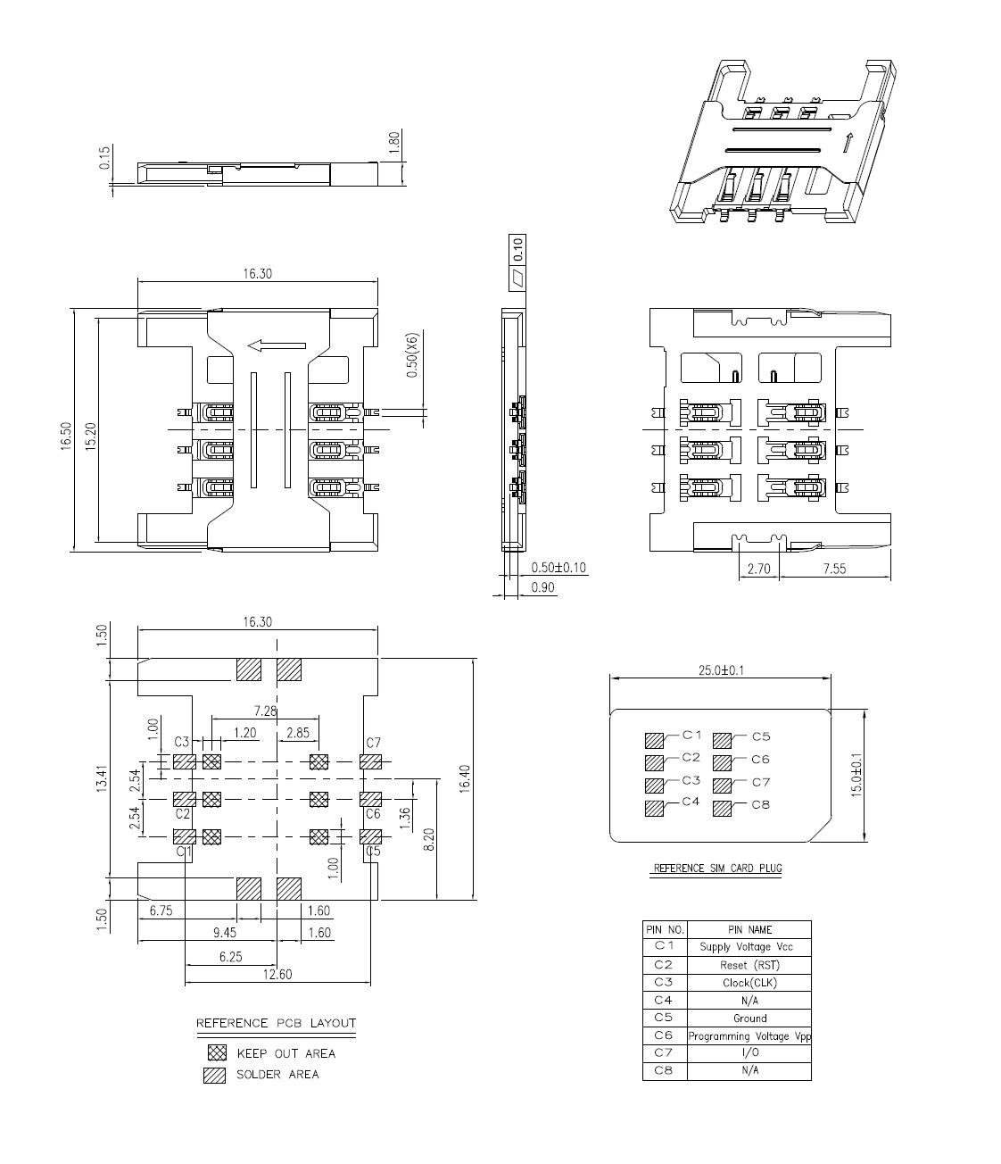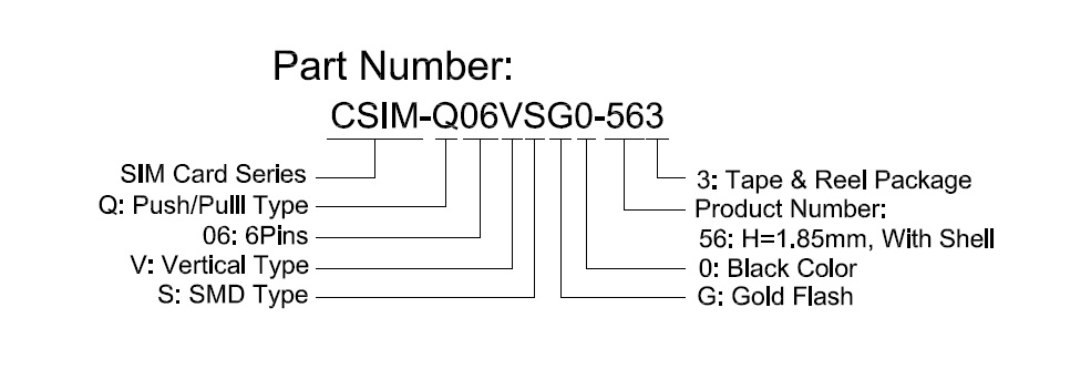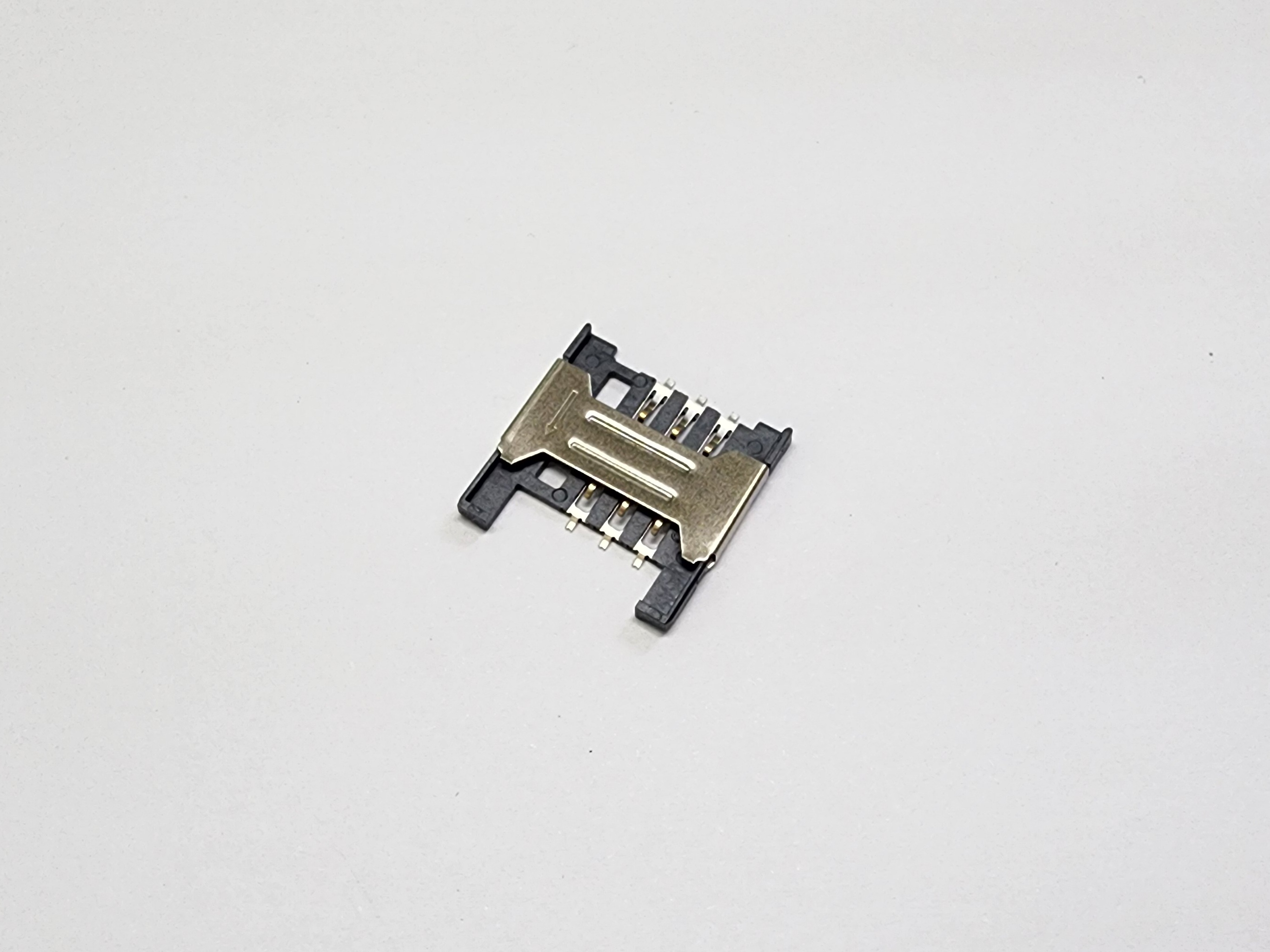 SIM Card Socket, 6Pins, Push/Pull Type, Pitch 2.54mm, H=1.85mm, Without Post, With Metal Shell, Gold Flash, Black Color
